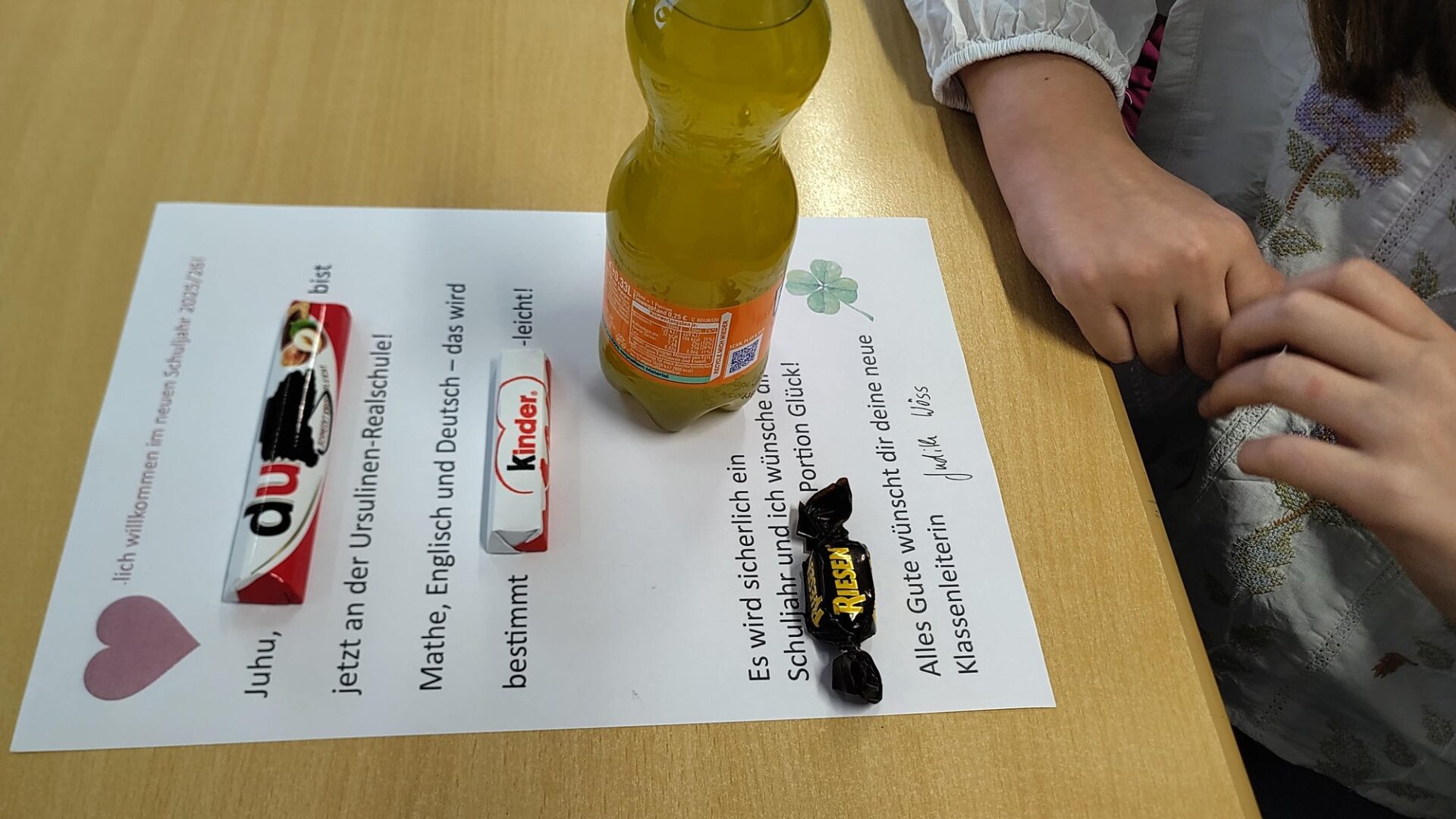Für 107 Mädchen begann heute ein neuer, spannender Lebensabschnitt! Gemeinsam mit ihren Eltern, kleineren Geschwistern und einigen Großeltern versammelten sie sich in unserer Aula, um diesen Moment zu erleben.rnSchulleiterin Angela Schleibinger hieß die neuen Schülerinnen herzlich willkommen und sprach ihnen Mut zu. Sie betonte, dass viele von ihnen nicht nur ein neues Schulgebäude, sondern vielleicht sogar eine neue Stadt kennenlernen und vielen neuen Herausforderungen begegnen werden. „Ihr fragt euch vielleicht: 'Schaffe ich das?' - Ich bin der Meinung, na klar. Man traut es euch einfach zu. Eure Eltern trauen es euch zu, eure Grundschullehrkräfte trauen es euch zu“, so Schleibinger. Sie ermutigte die Mädchen, sich selbst zu vertrauen und keine Scheu zu haben: „Das Einzige, was ihr immer tun müsst, fragen, fragen, fragen. Traut es euch einfach zu fragen. Ganz wurscht, welche Belange ihr habt, ihr werdet jemanden finden, der euch weiterhilft.“rnSchleibinger sprach auch die anfängliche Unsicherheit an, die viele empfinden mögen: „Dass man ein bisschen unsicher ist, ist nicht ungewöhnlich. Vertraut euch selbst, vertraut darauf, dass Menschen da sind, die euch helfen.“ Sie erinnerte an ihre eigenen Gedanken bei ihrem Amtsantritt und betonte die offene und freundliche Atmosphäre an der Ursulinen-Realschule: „Die Schülerinnen, die Lehrkräfte, auch die Hausmeister. Man kann mit jedem reden und jeder ist nett.“ Sie unterstrich die Bedeutung der Gemeinschaft: „Wichtig ist, dass man dem Ganzen auch eine Chance gibt, weil Gemeinschaft nur funktioniert, wenn man ihr eine Chance gibt.“rnAls symbolisches Geschenk überreichte die Schulleiterin den Mädchen einen besonderen Stein. „Mit Steinen kann man sich den Weg verbauen, darüber stolpern, aber man kann auch darüber hüpfen“, erklärte Schleibinger. Sie gab jeder Schülerin diesen Stein als persönlichen Glücksstein mit auf den Weg – ein Talisman für neue Wege und Herausforderungen.rnIm Anschluss an die Begrüßung wurden die Schülerinnen von ihren Klassenleiterinnen Dr. Susanne Kiener-Haslbeck, Magdalena Kania, Judith Wöss, Annika Lang und Birgit Eberl in Empfang genommen und in ihre neuen Klassenzimmer begleitet. Jede Klassenleitung fand einen individuellen Weg, um ihre Klasse gebührend willkommen zu heißen. So begrüßte Judith Wöss in der Klasse 5c jede Schülerin persönlich mit einem Getränk, einer Süßigkeit und einem Willkommensbrief, um den Start so angenehm wie möglich zu gestalten.rnEin Moment am Rande zeigte, wie sich manchmal die Kreise des Lebens schließen: Eine Mutter, die ihre Tochter begleitete, erkannte den Autor dieser Zeilen wieder. „Erinnern Sie sich noch an mich?“, fragte sie. Als sie ihren Namen nannte, entsann sich der Lehrer sofort: „Sie haben damals den Vorlesewettbewerb gewonnen!“ In diesem Schuljahr wird genau dieser Lehrer ihre Tochter im Lesen unterrichten...rnWir wünschen allen neuen Schülerinnen einen wunderbaren Start und eine lehrreiche, ereignisreiche und glückliche Zeit an der Ursulinen-Realschule!