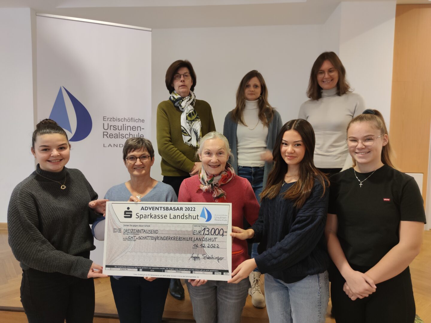 Menschen ganz in der Nähe und Menschen in der Ferne wollen unsere Schülerinnen nach dem großen Erfolg des diesjährigenAdventsbasarsunterstützen.Die regional-nahe Unterstützung geht in diesem Jahr an denVerein Kinderkrebshilfe Dingolfing-Landau-Landshut e. V.- Stellvertretend für diesen Verein nahm Elisabeth Schneider den Scheck über 6500 Euro in Empfang und berichtete den Klassensprecherinnen der Schule von der Arbeit ihres Vereins. Wenn Eltern von der Krebsdiagnose eines Kindes erführen, kämen zu den seelischen Belastungen schnell finanzielle hinzu: Besuchsfahrten, Fahrten zu Behandlungen, Kuraufenthalte, Nachhilfeunterricht - überall dort, wo die Kassen nicht zahlten und die persönlichen Mittel der Familien nicht ausreichten, versuche der Verein in die Bresche zu springen.Über denselben Unterstützungsbeitrag durfte sich auch Sissi Pöschl freuen. Das Kuratoriumsmitglied der Treuhandstiftung"Ecuador Licht und Schatten"war nicht das erste Mal an unserer Schule zu Gast. Bereits in der Vergangenheit erhielt die Ecuador-Hilfe eine großzügige Unterstützung der Schule, sodass nun bereits die dritte "Casa Ursulinen" errichtet werden könne. In diesen Häusern werde Kindern, so Pöschl, die extrem von der Armut bedroht sind, ein Schutzraum geboten. Vor allem Mädchen würden in diesen Häusern Alternativen zu einem prekären Leben geboten: Kreidestrich statt Straßenstrich, Wissen sammeln statt Müll sammeln - so könne man das Bildungskonzept dieser Häuser plakativ zusammenfassen.Sowohl Elisabeth Schneider als auch Sissi Pöschl zeigten sich gerade vor dem Hintergrund der angespannten wirtschaftlichen Zeiten beeindruckt von der hohen Spendensumme und bedankten sich bei Schulleiterin Angela Schleibinger für die Einladung und bei den Schülerinnen für ihr großes Engagement beim Adventsbasar.