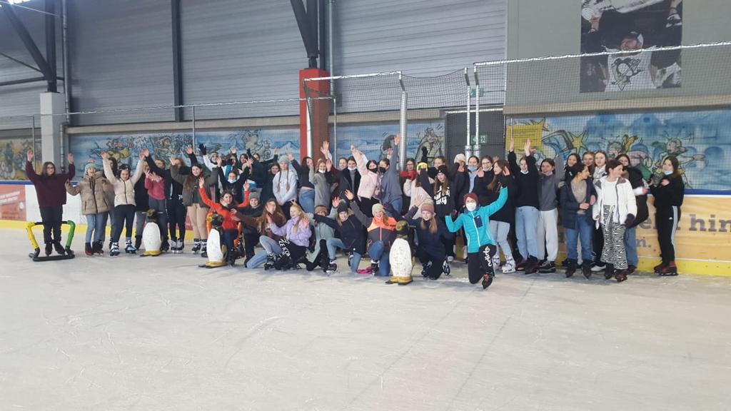 Nach langer Pause war mal wieder ein bisschen Action angesagt. Am Dienstag, den 22.02.22 ging es mit den Klassen 7b und c von der 1. – 3. Stunde zum Eislaufen. Von der 4. – 6. Stunde waren die Klassen 7a, d und e an der Reihe.Zu Fuß marschierte man an der Isar entlang zur Eishalle. Schnell die Schlittschuhe angezogen und ab ging es auf die Eisfläche.Es hat allen richtig Spaß gemacht, manche wollten gar nicht mehr vom Eis.Auch uns Sportlehrerinnen hat es sehr gut gefallen. Es war schön zu sehen, mit welcher Freude ihr dabei wart und wie ihr euch gegenseitig geholfen habt.