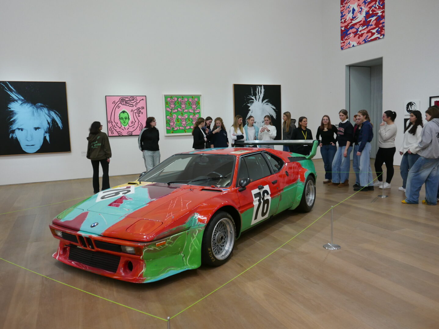 Es war die bestbesuchte Ausstellung, die das Münchner Museum Brandhorst je hatte, und wir durften mit unseren Kunstmädels der zehnten Jahrgangstufe natürlich nicht fehlen. Bis Ende Januar präsentierte das Museum eine umfassende Ausstellung, die sich den beiden Popart-Künstlern Andy Warhol & Keith Haring sowie ihren gemeinsamen Projekten widmete.Die Ausstellung war für alle Besucher eine kleine Zeitreise durch das Leben der 80er Jahre. Das bedeutet Party, Pop, Madonna, Marylin, aber auch Aktionismus, Umweltbewegungen, nuklearer Aufrüstung und AIDS.Aktueller konnte es also gar nicht sein. Keith Harings spricht sich in seiner Kunst für die Abrüstung aus, klärt über AIDS auf, macht queere Menschen endlich sichtbar. Andy Warhol kritisiert in seinen großformatigen Siebdrucken den Kapitalismus und wirbt sogar auf einem Plakat für „Die Grünen“. Über 130 Werke durften wir bewundern. Für beide Künstler war es wichtig, dass ihre Kunst möglichst viele Menschen erreicht. Uns hat sie das mit ihrer Tiefe und ihrer Aktualität auf alle Fälle.