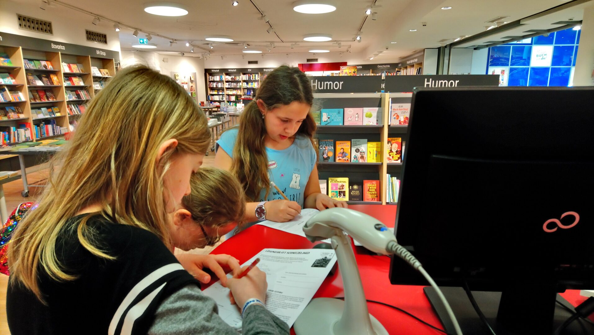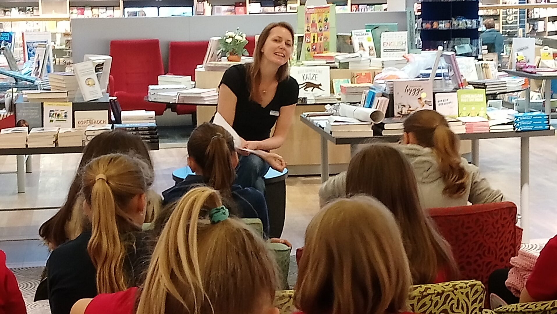 Den Termin wahrgenommen hat bereits die 5c, die während ihrer Deutschstunde bei Bücher Pustet zu Gast war. Dort wurde sie von der Mitarbeiterin Sonja Reischer freundlich empfangen. Nach einem kurzen Gespräch über Lieblingsbücher, über den Werdegang eines Buches und die Besonderheiten der sogenannten Buchpreisbindung, durften die Schülerinnen eine Rallye durch die Buchhandlung unternehmen, bei der sie die Antworten für ein Quizblatt finden konnten. Mit etwas Glück können sie dann bei der großen Verlosung am Ende des Schuljahres ein Buch gewinnen. Zum Abschluss gab's aber bereits für alle Schülerinnen gratis das diesjährige Lesetagsbuch mit dem Titel "Ich schenk dir eine Geschichte".