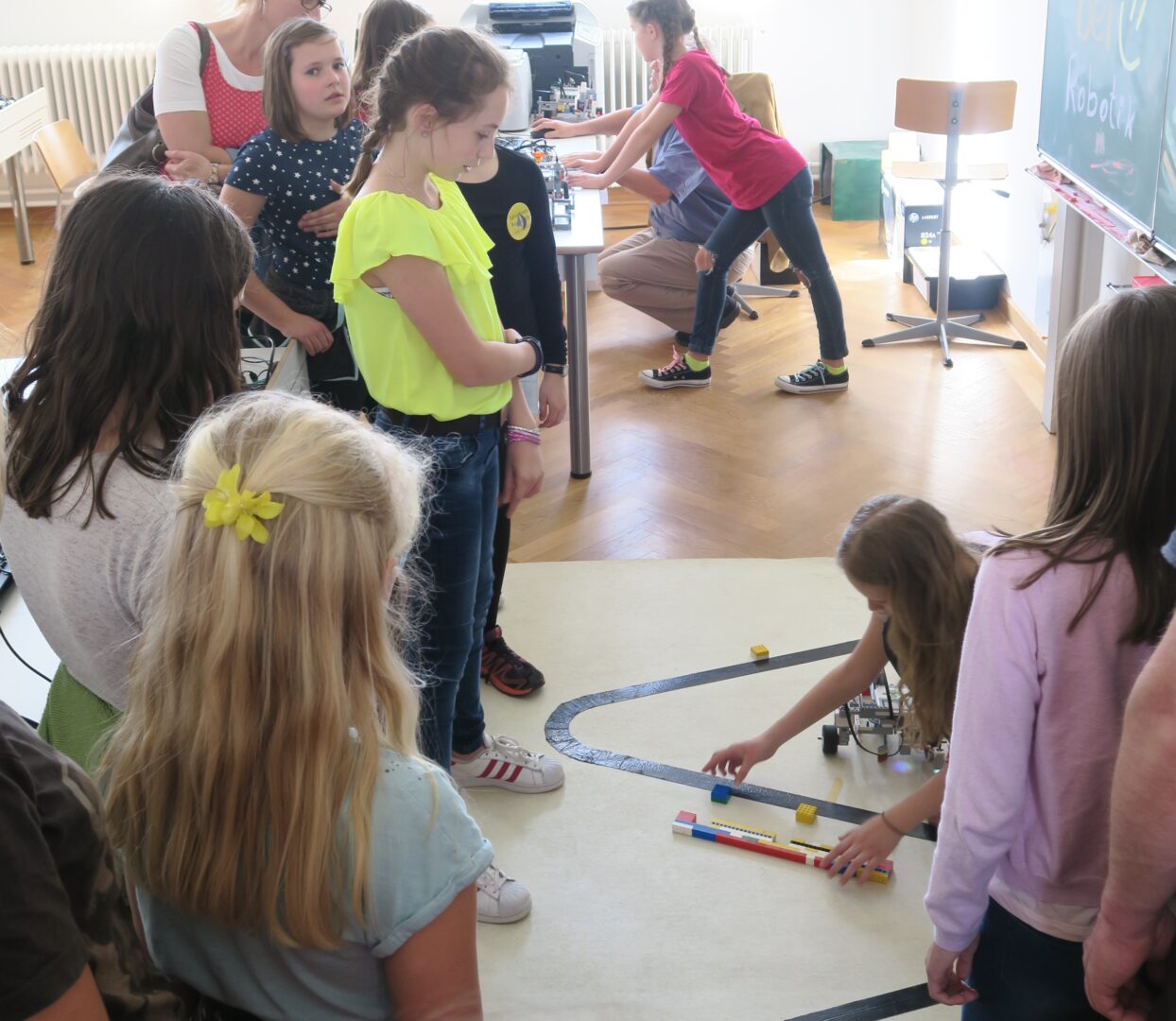 Dichtes Gedränge herrschte am vergangen Freitagnachmittag in vielen Räumen unserer Schule: Zahlreiche Grundschüler kamen mit ihren Geschwistern, Eltern, Omas und Opas, um sich ihre mögliche neue Schule genauer unter die Lupe zu nehmen. Beeindruckt zeigten sich viele Mamas und Papas von der tollen Atmosphäre im Haus, aber auch davon, dass so viele aktuelle Schülerinnen freiwillig ihren freien Freitagnachmittag investiert hatten, um ihre Schule mit einem bunten Strauß von Aktivitäten vorzustellen.