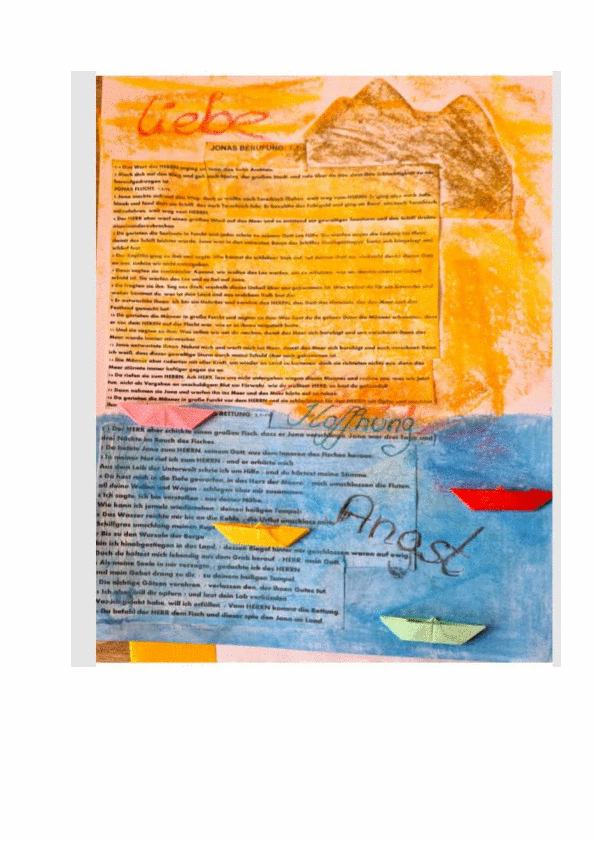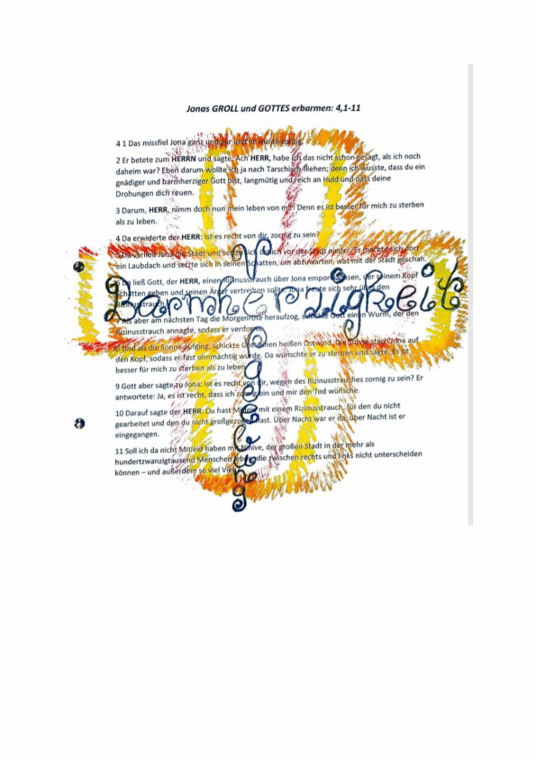 Es gab Zeichnungen und Comics, eine Fotostory und bible art journailing, bei dem der Text mit Bildern und Begriffen übermalt wird.