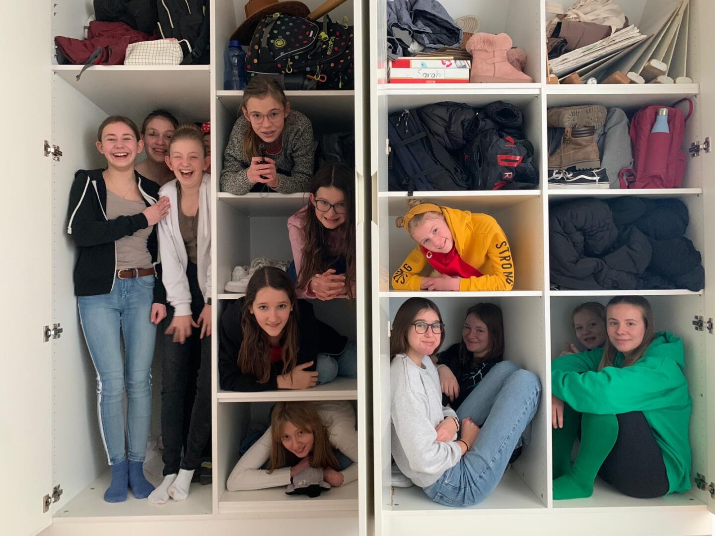 Am Unsinnigen Donnerstag haben etliche Klassen gezeigt, dass sie nicht nur fleißig lernen, sondern auch sehr einfallsreich sein können. Eine Klasse legte sich dabei besonders ins Zeug: Die Schülerinnen der7ahaben heute nämlich einen Streich nach dem anderen ausgeheckt – Max und Moritz nichts dagegen! – und damit für viel Freude im Schulalltag gesorgt.Zu Beginn des Vormittags gab die Klasse vor, keine Hausaufgaben gemacht zu haben und versuchte damit, die Lehrerin in eine Falle zu locken.Als Nächstes ließen sich die Schülerinnen im Klassenzimmer einsperren, um den verblüfften Lehrer der Vertretungsstunde dazu zu bewegen, andernorts im Schulhaus nach der Klasse zu suchen. Alle zogen an einem Strang, es war mucksmäuschenstill und anschließend wurde viel gelacht.Doch damit nicht genug: Die Klasse lockte auch einen Lehrer in die Turnhalle und versteckte sich im Wandschrank. Hier zeigte sich der tolle Zusammenhalt in der Klasse, denn sie mussten sich gewissermaßen Körper an Körper zusammenfalten, um Platz zu finden – Origami Hilfsausdruck! Die Lehrkraft konnte sich ein Schmunzeln nicht verkneifen und fand die Aktion sehr pfiffig und sympathisch.