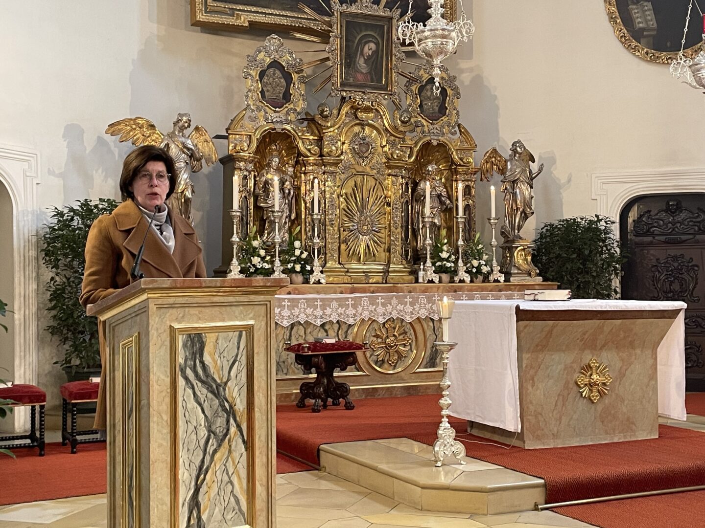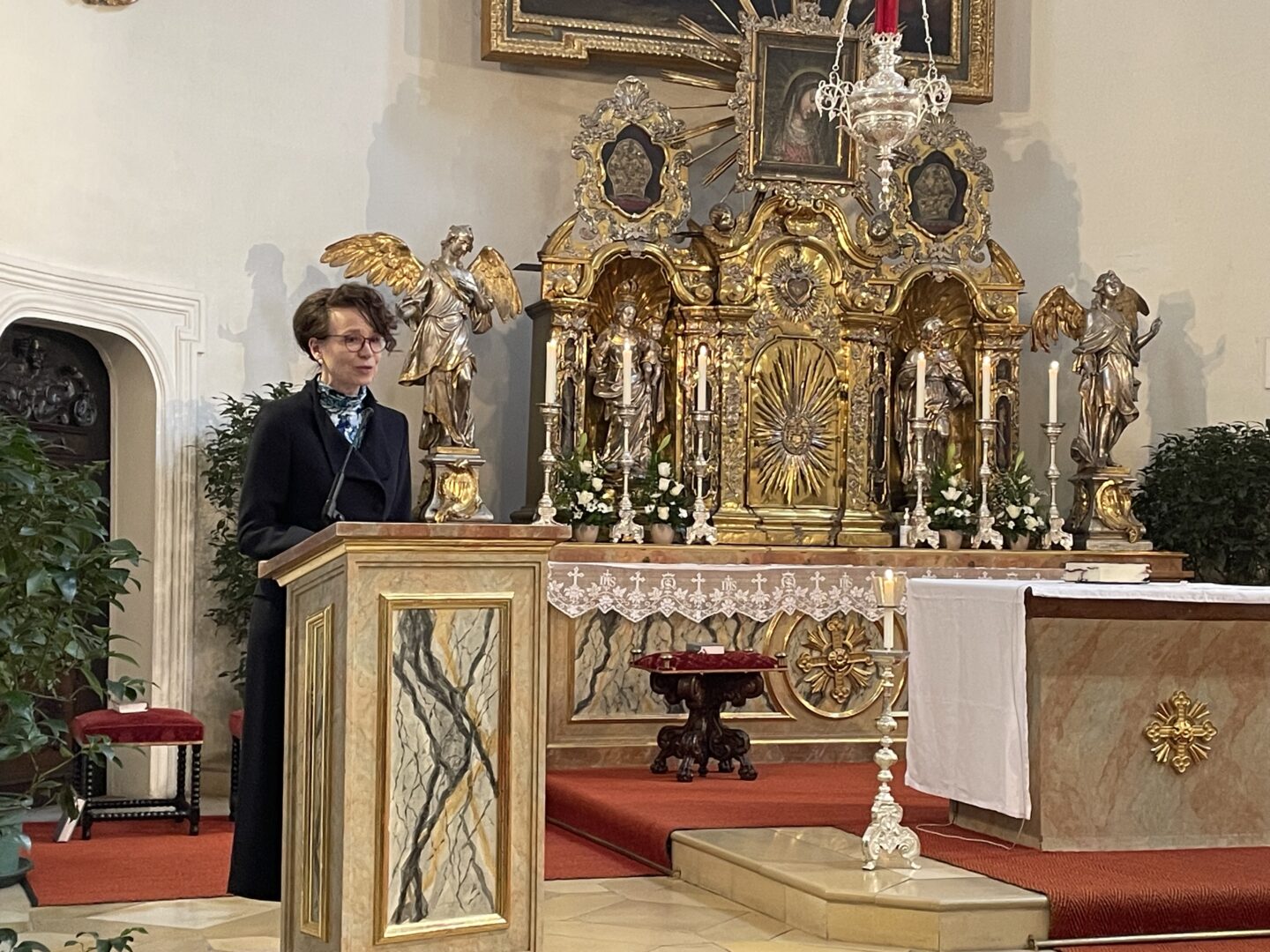 Beim anschließenden Festakt hob Ordinariatsdirektorin Dr. Sandra Krump die enormen Leistungen von Angela Schleibinger hervor. Ihre Amtszeit seit September 2013 war untrennbar mit der Generalsanierung unserer Schule und des Klosters verbunden. Sie stellte sich dieser Herausforderung entschlossen, verlor dabei aber nie das menschliche Maß. „Ich werde nicht alles verändern. Die Ursulinenschule ist eine gute Schule“, hatte sie bei ihrer Amtseinführung versprochen – und sie hat Wort gehalten.