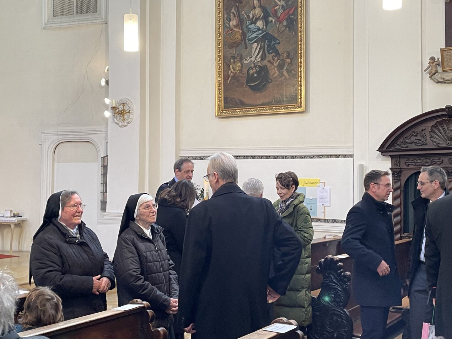 Eingeleitet wurde der Abschiedstag mit einer herzlichen Begrüßung durch unsere Konrektorin Barbara Luginger und einem feierlichen Gottesdienst in der Ursulinenkirche St. Joseph. Schulseelsorger Armin Weyers und Dekan Alexander Blei zelebrierten die Messe, die ganz im Zeichen der Wertschätzung stand. „Sie wollten keinen Lebensaufriss“, verriet Pfarrer Weyers in seiner Predigt und richtete den Fokus stattdessen auf das, was zählt: „Sie sind ein Abbild Gottes.“