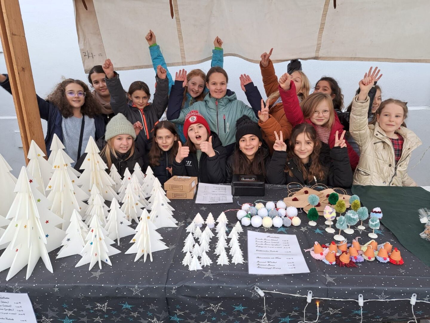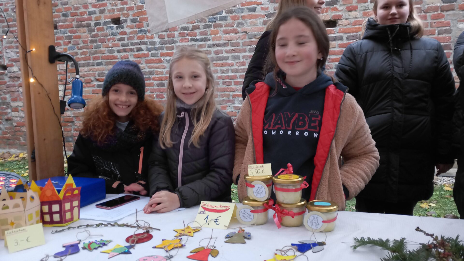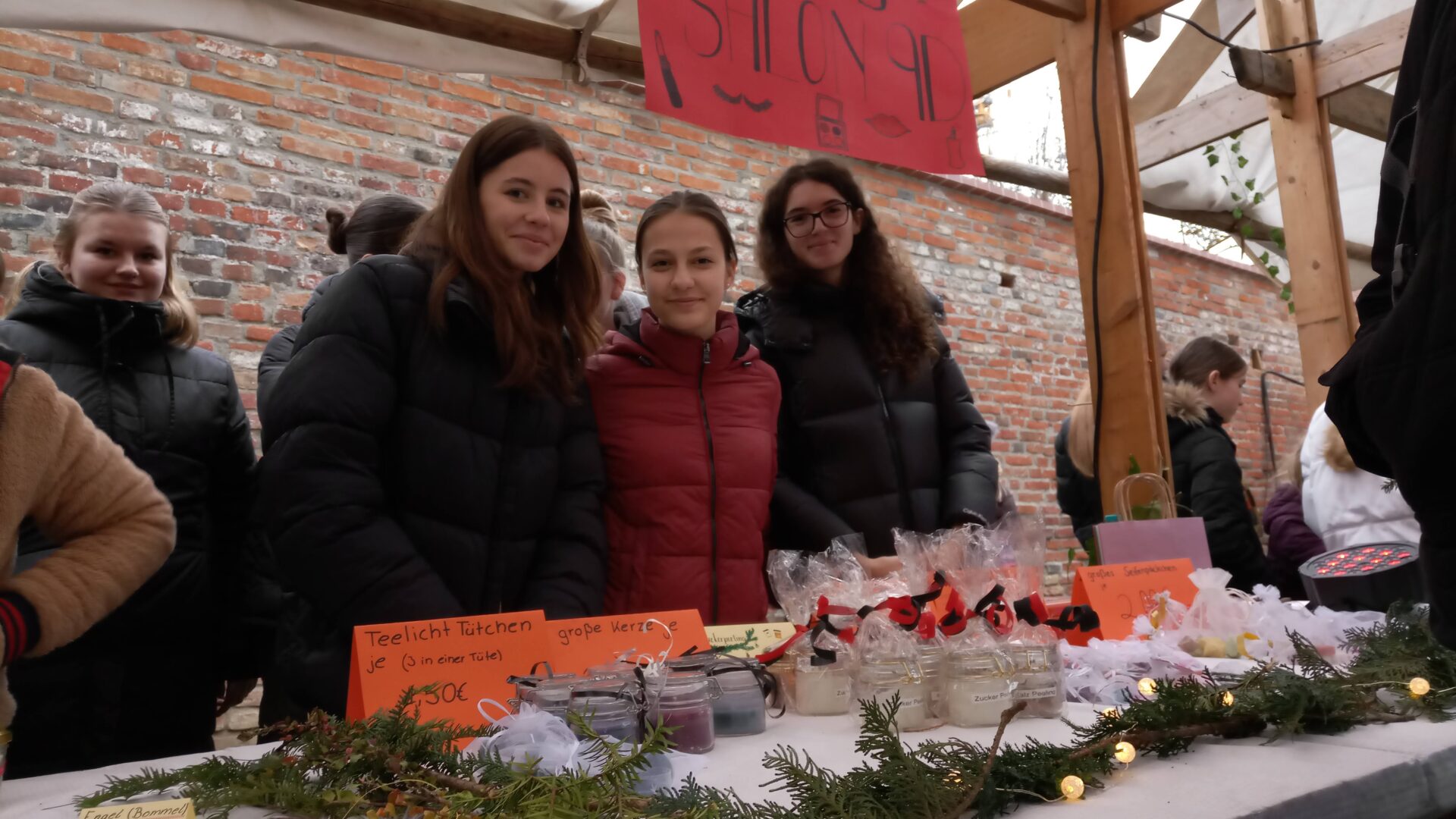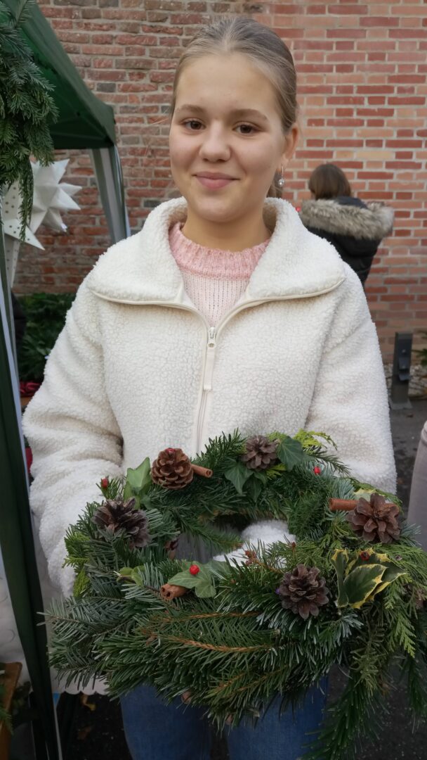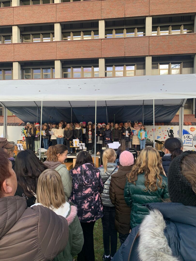 Sogar den wenigen Vierbeinern dürfte an diesem Nachmittag klar geworden sein, dass eine besondere Zeit bevorsteht: Für sie waren nämlich Buttermilchleckerlis, Bananenkekse und besonders herzhafte Meat-Love-Plätzchen im Angebot. Und wenn versehentlich ein Zweibeiner seinen Fuß unsanft auf einem Hundebein platziert hätte, so hätte dieser auch gleich Pfotenbalsam kaufen können, den die Schülerinnen der 6c aus „hochwertigen Zutaten“ gemischt hatten. Ein versehentlich Tritt auf des Nachbarn Fuß – diese Gefahr lauerte beim Adventsbasar der Ursulinen-Realschule tatsächlich, schließlich waren es viele, ja sehr, sehr viele Schülerinnen, Eltern, Geschwister, Lehrer und Freunde der Schule, die erstmals nach vier Jahren – Corona sei’s geklagt! – wieder zu diesem traditionsreichen vorweihnachtlichen Markt gekommen waren.Aufgrund der Sanierungsarbeiten im Schulhof, fand die Benefizveranstaltung heuer auf dem Freigelände neben der Modulschule statt. Diese ungewohnte Räumlichkeit wurde durch die von Hausmeistern, Lehrer- und Schülerinnen liebevoll dekorierten Buden stimmungsvoll in Szene gesetzt.Wer davon inspiriert den vorweihnachtlichen Zauber auch ins eigene Zuhause transportieren wollte, fand auf den Verkaufsflächen der Buden zahllose Gelegenheiten; hatten die Schülerinnen doch seit Wochen geschnitten, gebastelt, gestanzt und geklebt, um Adventskränze, Weihnachtspyramiden, Tonanhänger, Schneemänner, Nusswichtel, Christbaumkugeln, Makrameesterne, Duftseifen und vieles mehr anzubieten.Und die Leckerlis gab’s natürlich nicht nur für den Hund: Pizzaschnecken und Plätzchen, Wraps und Crêpes, heiße Maronen und lustige Muffins, Spekulatius- und Philadelphiatorten, Kartoffelsuppe und Kaffee erfreuten Gaumen und Mägen.Die längste Schlange bildete sich fortwährend vor dem Glühweinstand. Wer sich hier in Erwartung seines Heißgetränks einreihte, musste sich nicht langweilen – schließlich hatte er einen guten Blick auf die Freilichtbühne, auf der Vokalisten und Instrumentalisten der Schule die Glocken süßer klingen und der Engel helle Lieder verlauten ließen. Schade nur, dass gegen Ende bei „Let it snow“ jene besungene Substanz in noch flüssigerem Aggregatzustand vom Himmel fiel.Der guten Stimmung tat dies keinen Abbruch. Längst hatte sich der Adventsbasar, dessen Gewinn in diesem Jahr der Kinderkrebshilfe Dingolfing-Landau-Landshut e. V. sowie Ecuador Licht und Schatten e. V. zugute kommen wird, in ein großes Ehemaligentreffen verwandelt: Während die ehemalige Schülerin ihren damaligen Lehrer ohne zu zögern namentlich grüßte, begann der Kopf des Lehrers mit dem Glühwein um die Wette zu rauchen: Wie hieß das damals unterrichtete kleine Mädchen bloß, das nun als erwachsene Frau mit ihren drei Kindern vor ihm steht und ankündigt, ihre Kinder bald auch zu den Ursulinen schicken zu wollen…