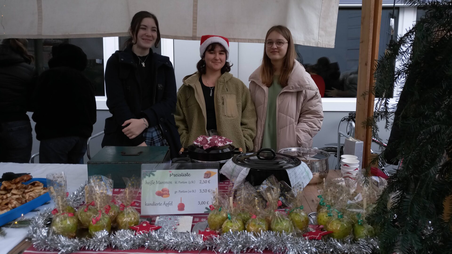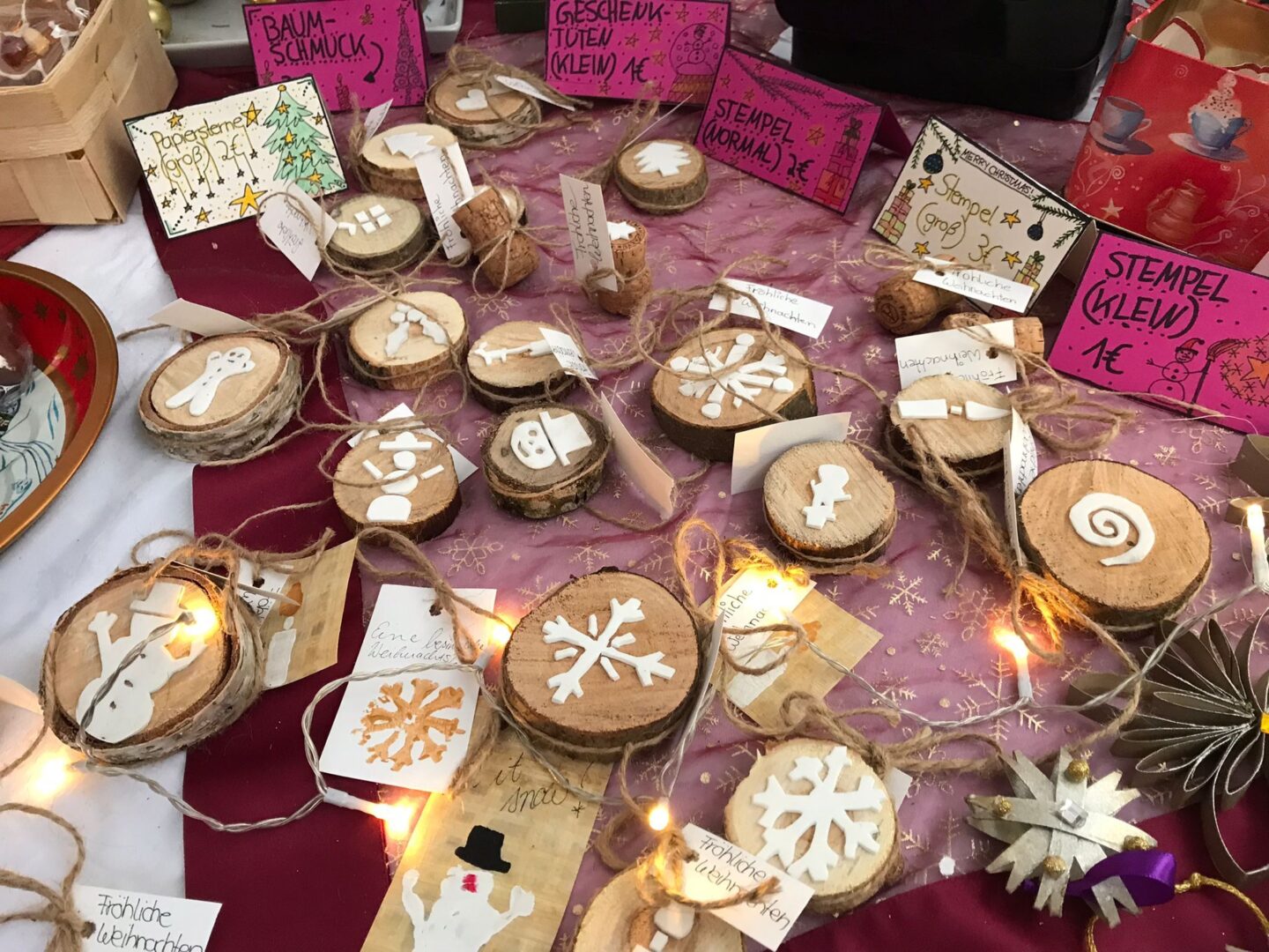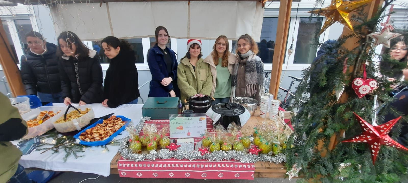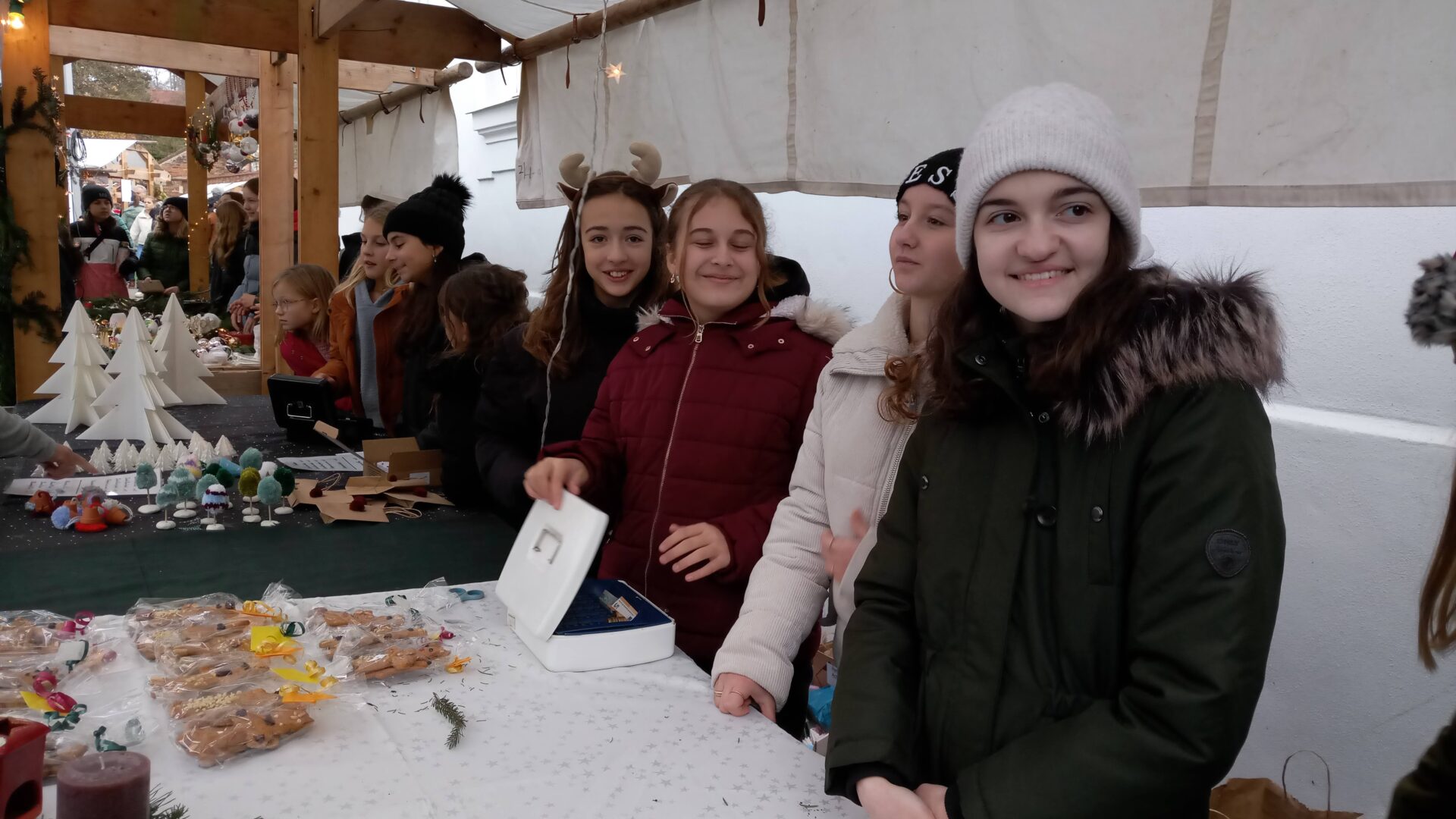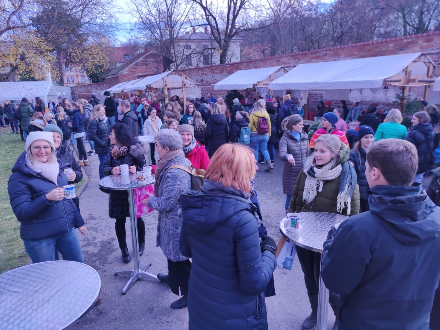 Sogar den wenigen Vierbeinern dürfte an diesem Nachmittag klar geworden sein, dass eine besondere Zeit bevorsteht: Für sie waren nämlich Buttermilchleckerlis, Bananenkekse und besonders herzhafte Meat-Love-Plätzchen im Angebot. Und wenn versehentlich ein Zweibeiner seinen Fuß unsanft auf einem Hundebein platziert hätte, so hätte dieser auch gleich Pfotenbalsam kaufen können, den die Schülerinnen der 6c aus „hochwertigen Zutaten“ gemischt hatten. Ein versehentlich Tritt auf des Nachbarn Fuß – diese Gefahr lauerte beim Adventsbasar der Ursulinen-Realschule tatsächlich, schließlich waren es viele, ja sehr, sehr viele Schülerinnen, Eltern, Geschwister, Lehrer und Freunde der Schule, die erstmals nach vier Jahren – Corona sei’s geklagt! – wieder zu diesem traditionsreichen vorweihnachtlichen Markt gekommen waren.Aufgrund der Sanierungsarbeiten im Schulhof, fand die Benefizveranstaltung heuer auf dem Freigelände neben der Modulschule statt. Diese ungewohnte Räumlichkeit wurde durch die von Hausmeistern, Lehrer- und Schülerinnen liebevoll dekorierten Buden stimmungsvoll in Szene gesetzt.Wer davon inspiriert den vorweihnachtlichen Zauber auch ins eigene Zuhause transportieren wollte, fand auf den Verkaufsflächen der Buden zahllose Gelegenheiten; hatten die Schülerinnen doch seit Wochen geschnitten, gebastelt, gestanzt und geklebt, um Adventskränze, Weihnachtspyramiden, Tonanhänger, Schneemänner, Nusswichtel, Christbaumkugeln, Makrameesterne, Duftseifen und vieles mehr anzubieten.Und die Leckerlis gab’s natürlich nicht nur für den Hund: Pizzaschnecken und Plätzchen, Wraps und Crêpes, heiße Maronen und lustige Muffins, Spekulatius- und Philadelphiatorten, Kartoffelsuppe und Kaffee erfreuten Gaumen und Mägen.Die längste Schlange bildete sich fortwährend vor dem Glühweinstand. Wer sich hier in Erwartung seines Heißgetränks einreihte, musste sich nicht langweilen – schließlich hatte er einen guten Blick auf die Freilichtbühne, auf der Vokalisten und Instrumentalisten der Schule die Glocken süßer klingen und der Engel helle Lieder verlauten ließen. Schade nur, dass gegen Ende bei „Let it snow“ jene besungene Substanz in noch flüssigerem Aggregatzustand vom Himmel fiel.Der guten Stimmung tat dies keinen Abbruch. Längst hatte sich der Adventsbasar, dessen Gewinn in diesem Jahr der Kinderkrebshilfe Dingolfing-Landau-Landshut e. V. sowie Ecuador Licht und Schatten e. V. zugute kommen wird, in ein großes Ehemaligentreffen verwandelt: Während die ehemalige Schülerin ihren damaligen Lehrer ohne zu zögern namentlich grüßte, begann der Kopf des Lehrers mit dem Glühwein um die Wette zu rauchen: Wie hieß das damals unterrichtete kleine Mädchen bloß, das nun als erwachsene Frau mit ihren drei Kindern vor ihm steht und ankündigt, ihre Kinder bald auch zu den Ursulinen schicken zu wollen…
