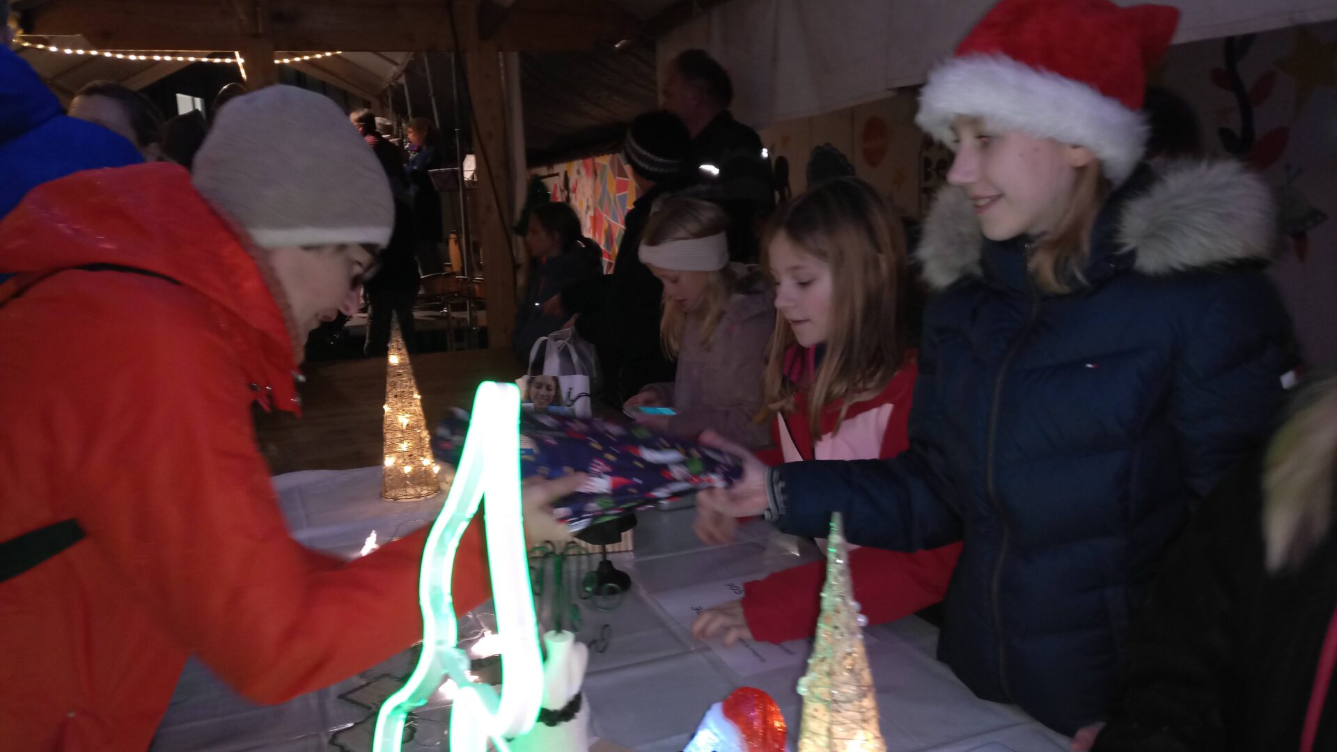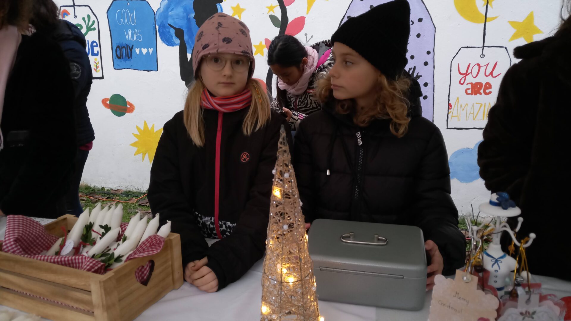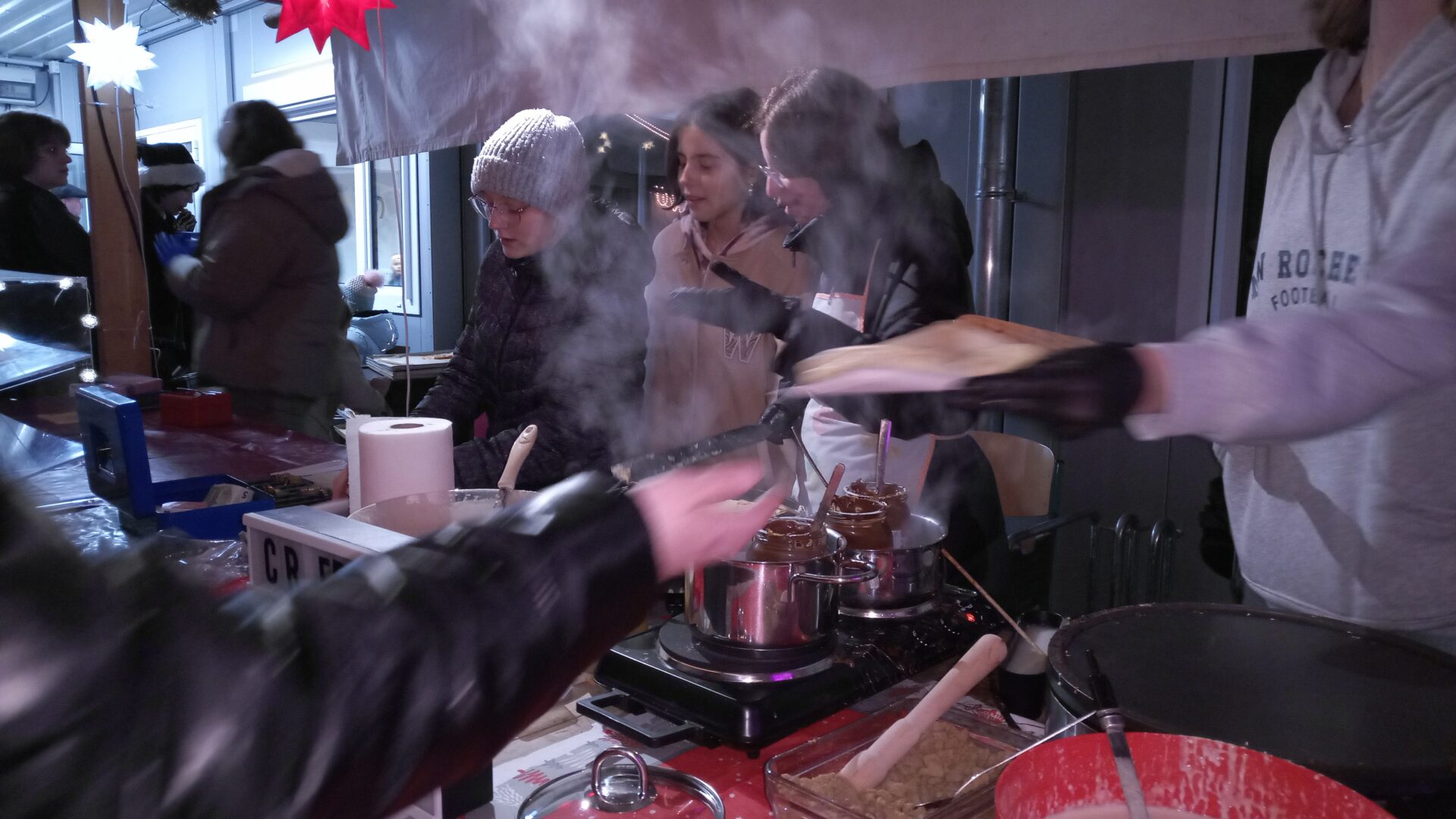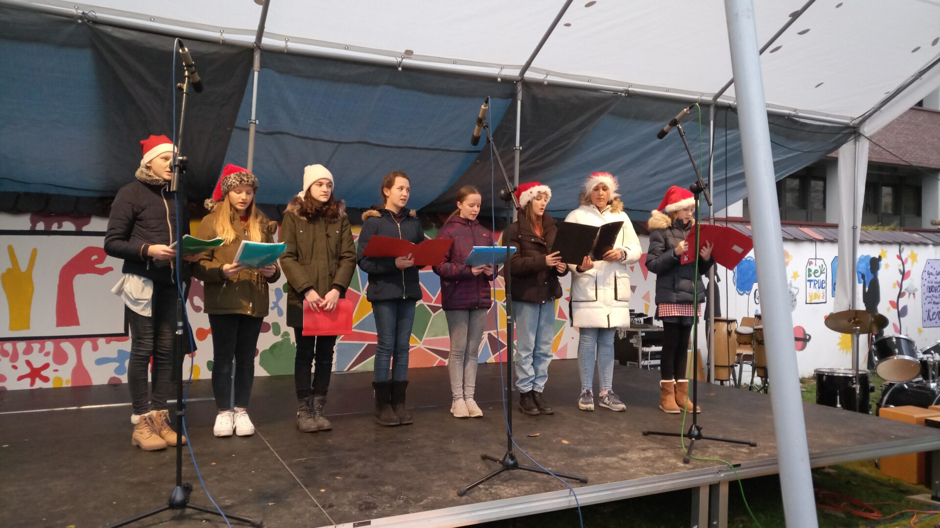 Sogar den wenigen Vierbeinern dürfte an diesem Nachmittag klar geworden sein, dass eine besondere Zeit bevorsteht: Für sie waren nämlich Buttermilchleckerlis, Bananenkekse und besonders herzhafte Meat-Love-Plätzchen im Angebot. Und wenn versehentlich ein Zweibeiner seinen Fuß unsanft auf einem Hundebein platziert hätte, so hätte dieser auch gleich Pfotenbalsam kaufen können, den die Schülerinnen der 6c aus „hochwertigen Zutaten“ gemischt hatten. Ein versehentlich Tritt auf des Nachbarn Fuß – diese Gefahr lauerte beim Adventsbasar der Ursulinen-Realschule tatsächlich, schließlich waren es viele, ja sehr, sehr viele Schülerinnen, Eltern, Geschwister, Lehrer und Freunde der Schule, die erstmals nach vier Jahren – Corona sei’s geklagt! – wieder zu diesem traditionsreichen vorweihnachtlichen Markt gekommen waren.Aufgrund der Sanierungsarbeiten im Schulhof, fand die Benefizveranstaltung heuer auf dem Freigelände neben der Modulschule statt. Diese ungewohnte Räumlichkeit wurde durch die von Hausmeistern, Lehrer- und Schülerinnen liebevoll dekorierten Buden stimmungsvoll in Szene gesetzt.Wer davon inspiriert den vorweihnachtlichen Zauber auch ins eigene Zuhause transportieren wollte, fand auf den Verkaufsflächen der Buden zahllose Gelegenheiten; hatten die Schülerinnen doch seit Wochen geschnitten, gebastelt, gestanzt und geklebt, um Adventskränze, Weihnachtspyramiden, Tonanhänger, Schneemänner, Nusswichtel, Christbaumkugeln, Makrameesterne, Duftseifen und vieles mehr anzubieten.Und die Leckerlis gab’s natürlich nicht nur für den Hund: Pizzaschnecken und Plätzchen, Wraps und Crêpes, heiße Maronen und lustige Muffins, Spekulatius- und Philadelphiatorten, Kartoffelsuppe und Kaffee erfreuten Gaumen und Mägen.Die längste Schlange bildete sich fortwährend vor dem Glühweinstand. Wer sich hier in Erwartung seines Heißgetränks einreihte, musste sich nicht langweilen – schließlich hatte er einen guten Blick auf die Freilichtbühne, auf der Vokalisten und Instrumentalisten der Schule die Glocken süßer klingen und der Engel helle Lieder verlauten ließen. Schade nur, dass gegen Ende bei „Let it snow“ jene besungene Substanz in noch flüssigerem Aggregatzustand vom Himmel fiel.Der guten Stimmung tat dies keinen Abbruch. Längst hatte sich der Adventsbasar, dessen Gewinn in diesem Jahr der Kinderkrebshilfe Dingolfing-Landau-Landshut e. V. sowie Ecuador Licht und Schatten e. V. zugute kommen wird, in ein großes Ehemaligentreffen verwandelt: Während die ehemalige Schülerin ihren damaligen Lehrer ohne zu zögern namentlich grüßte, begann der Kopf des Lehrers mit dem Glühwein um die Wette zu rauchen: Wie hieß das damals unterrichtete kleine Mädchen bloß, das nun als erwachsene Frau mit ihren drei Kindern vor ihm steht und ankündigt, ihre Kinder bald auch zu den Ursulinen schicken zu wollen…