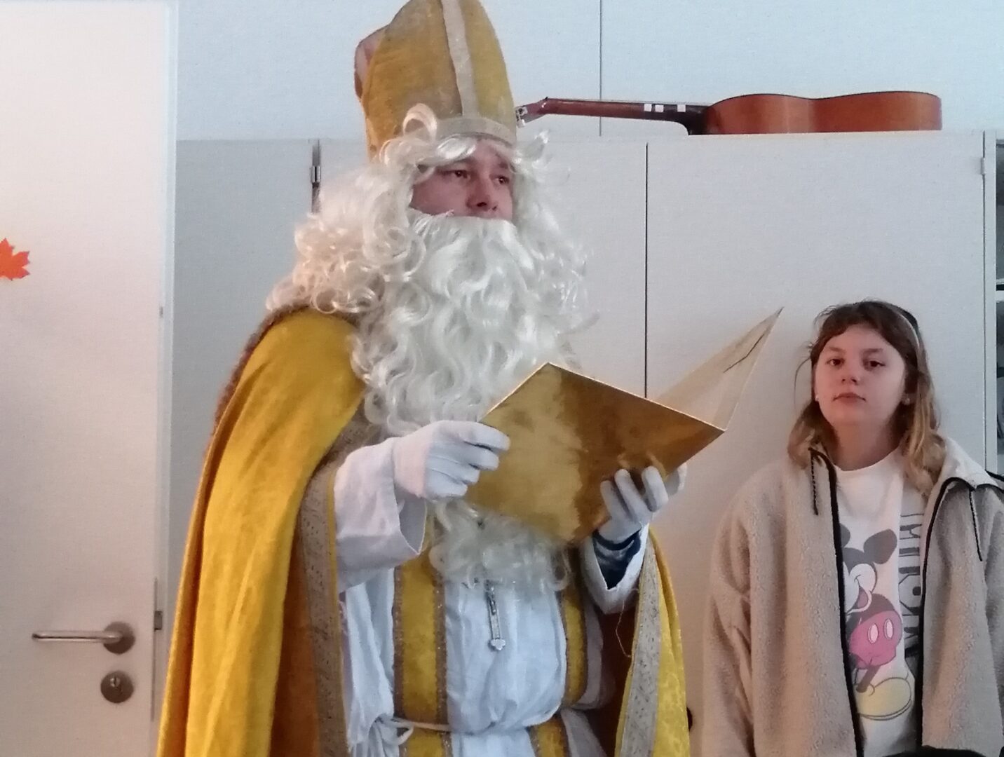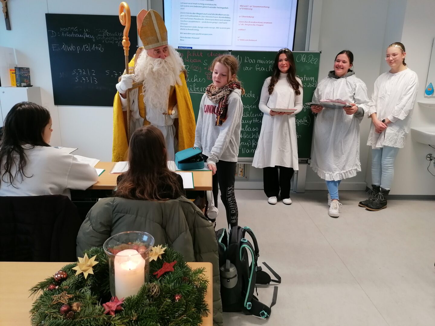 Am Nachmittag stattete der Nikolaus unserer offenen Ganztagsbetreuung einen kurzen Besuch ab. Es gab Lob von ihm, Wünsche hatte er allerdings auch dabei: Nicht an das Christkind, sondern direkt an unsere Schülerinnen.