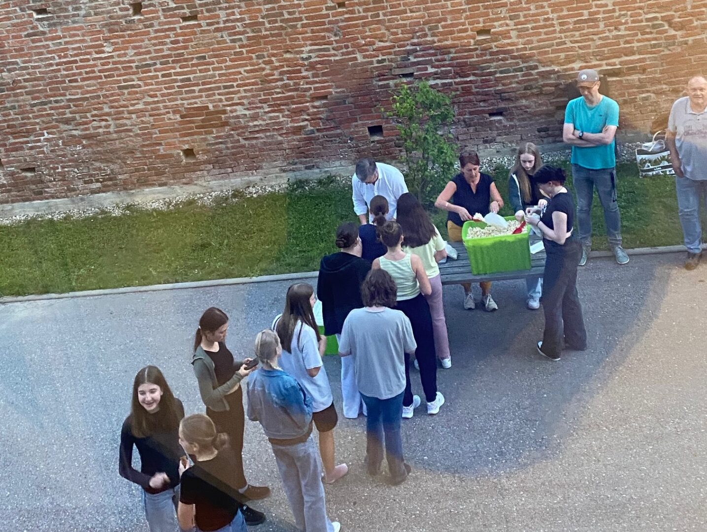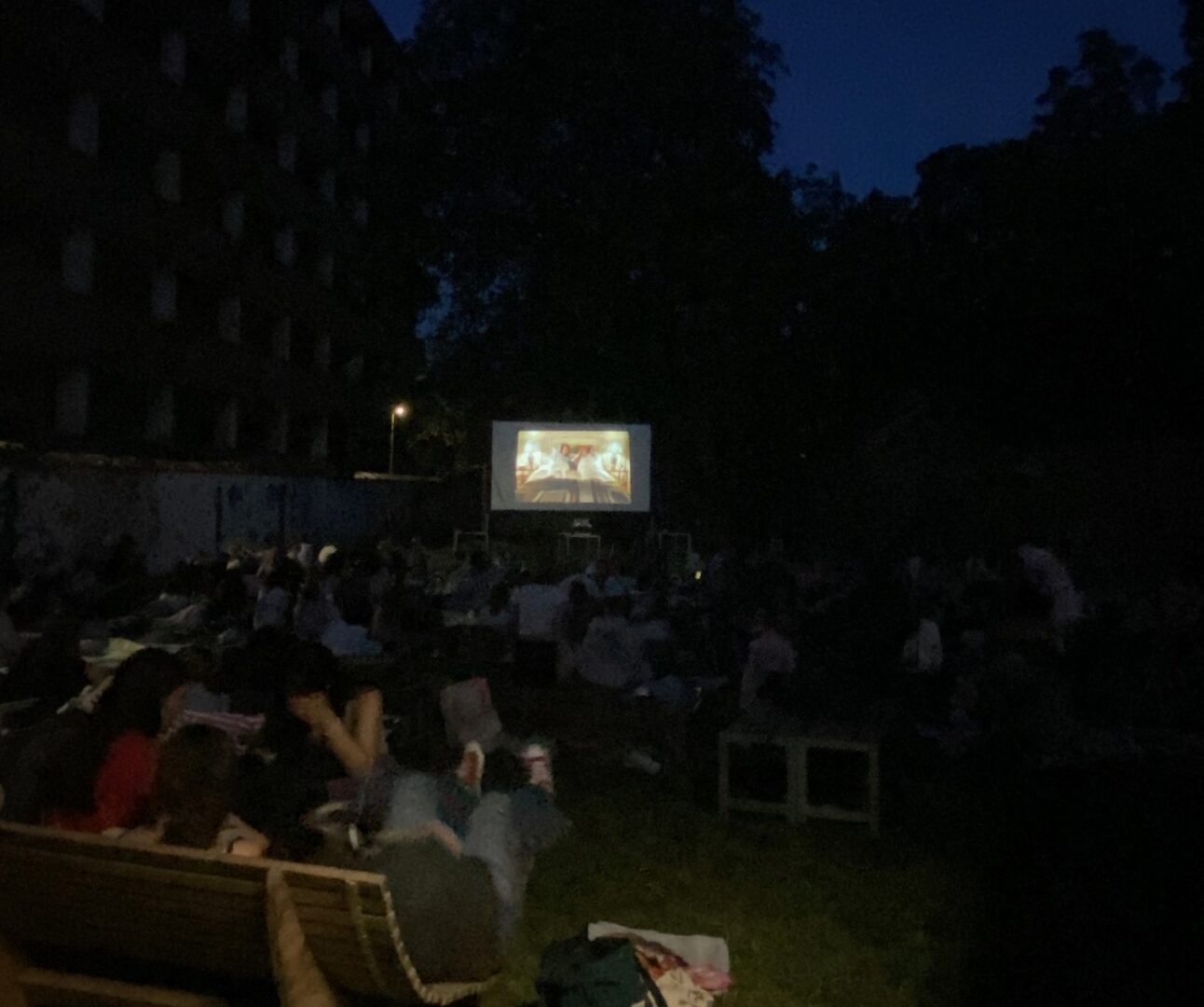 Das Wetter zeigte sich nach verregneten Tagen von seiner besten Seite. Der Film startete kurz nach 21:15 Uhr bei Sonnenuntergang und dauerte bis etwa 23:00 Uhr. Am Ende des Abends waren die Schülerinnen begeistert und fragten bereits nach dem nächsten Open-Air-Kinoabend.