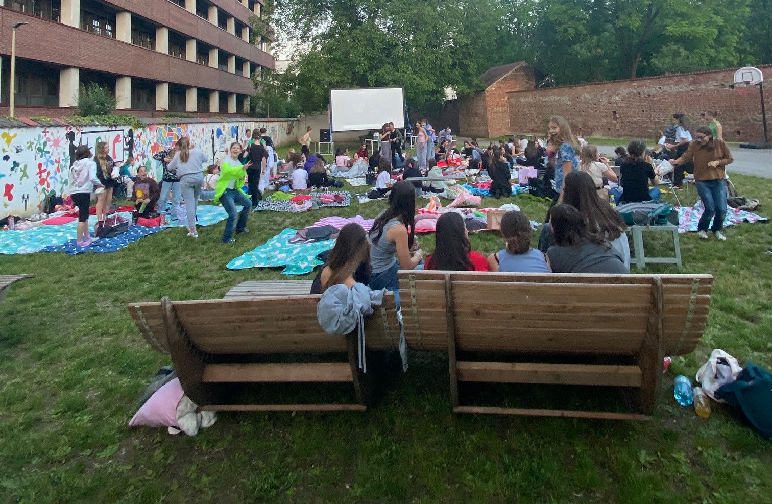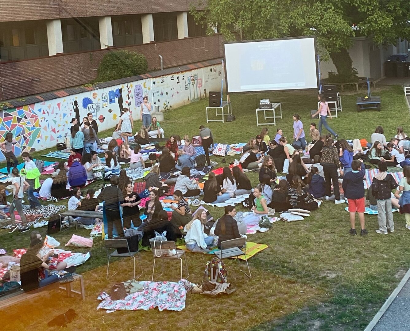 Der kostenlose Film, der sich für alle Jahrgangsstufen eignete, zog160 filmbegeisterte Schülerinnenan. Sie machten es sich auf der Wiese der Modulschule gemütlich und brachten dafür Picknickdecken und allerlei Knabbereien mit.