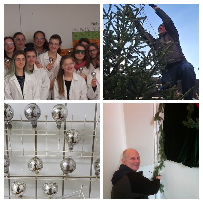 Allüberall auf den Leiterspitzensah ich eifrige Männer sitzenUnd droben vom Chemiesaaltorsah mit versilberten Kolben die 9c hervor
