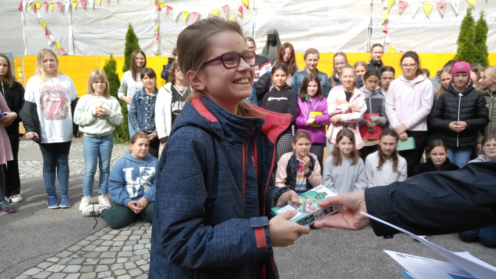 Alle haben eine Teilnahmeurkunde und eine Lösungsbroschüre erhalten, sowie einen Mitmachpreis: „Pavalini – Tausend und eine Insel: Geh´auf Entdeckungsreise im Puzzle-Meer”. Außerdem gab es Sonderpreise für besondere Leistungen: Das Känguru-T-Shirt für den weitesten Kängurusprung, also die meisten hintereinander gelösten Aufgaben, ging anJulia Koschaus der 8a, die 15 von 30 Aufgaben in Serie richtig beantwortet hat. Das ist eine Megaleistung, denn es gab die Möglichkeit, Aufgaben wegzulassen. Einen dritten Preis auf Bundesebene hat Johanna Ossneraus der 5c gewonnen, die ein zwei- und dreidimensionales Puzzle als Belohnung bekam. Besonders bemerkenswert ist, dass sie die gleichen Aufgaben wie die sechsten Klassen gelöst hat.