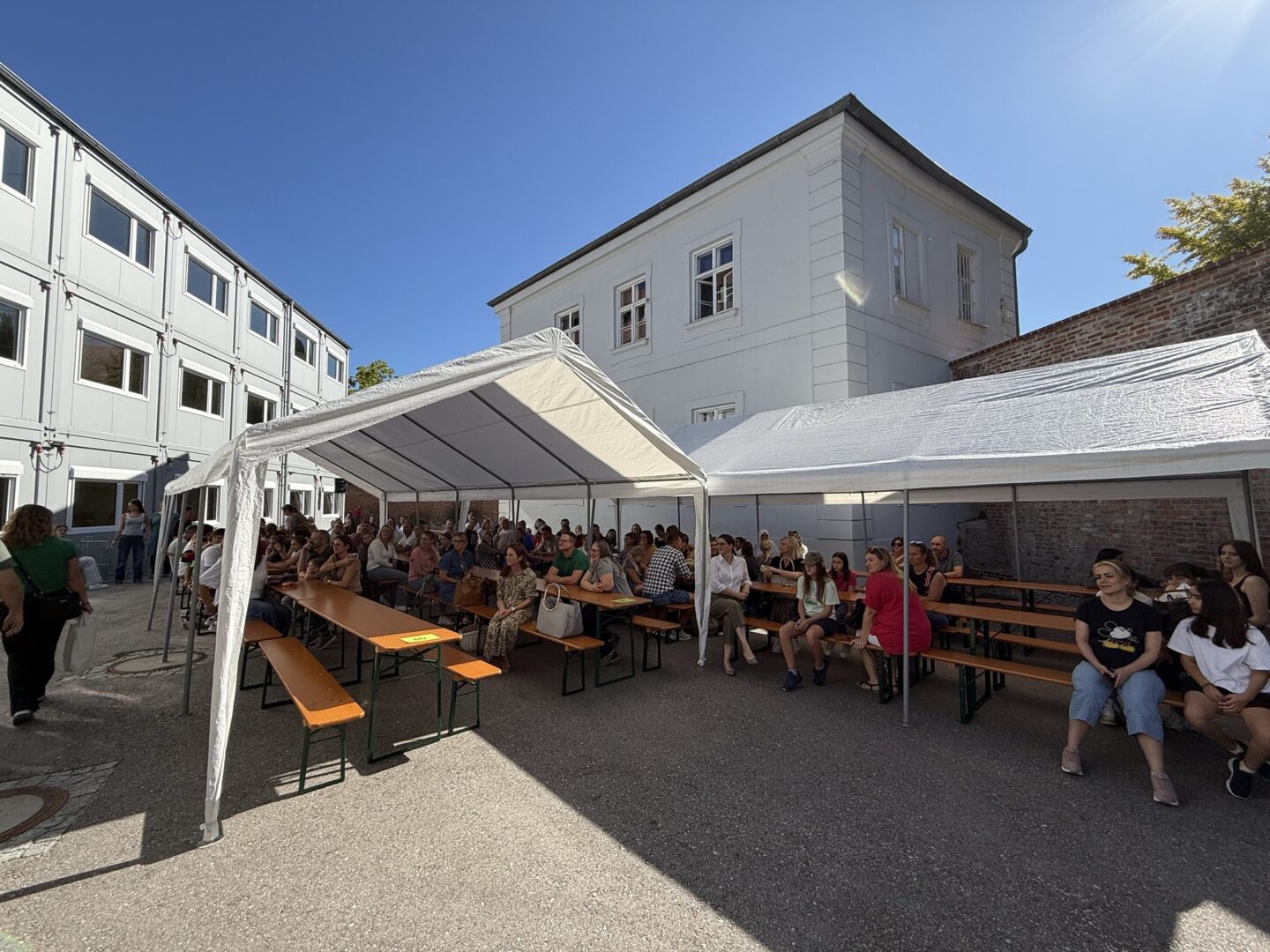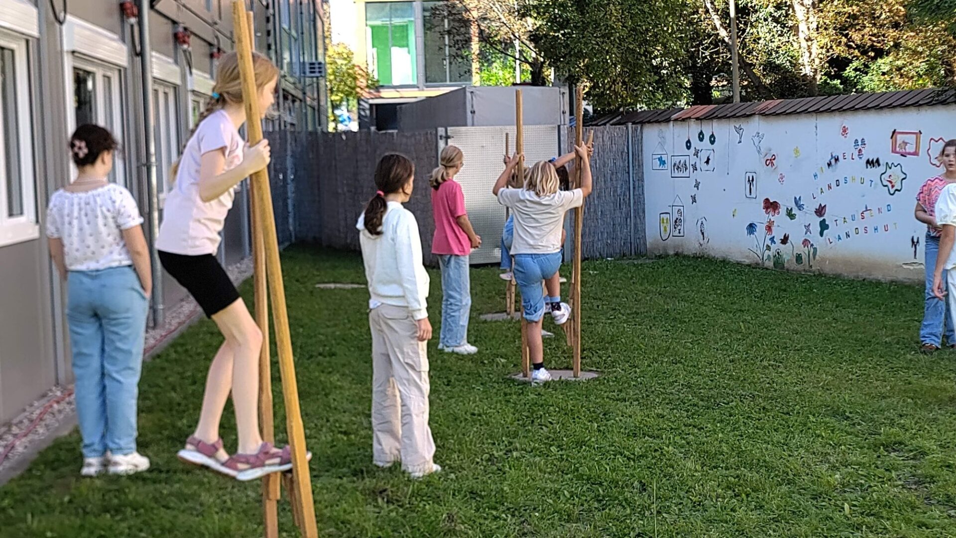 "Weißt du noch, wie wir vor sechs Jahren beim Fußball zusammengeprallt sind? Dort bei diesem anderen Gebäude gegenüber vom CCL" – "Oder wie wir bei der Schnitzeljagd den Musikraum ewig nicht gefunden hatten?" – "Genau, das war auch so ein supersonniger Tag damals!"rnVielleicht werden wir diesen Dialog an einem warmen Juliabend 2031 vor der Turnhalle vernehmen, wenn die im Abendkleid stolzierenden Absolventinnen des AK 2031 die laute, musikgeschwängerte Turnhalle kurz verlassen und sich an ihr Kennenlernfest vor sechs Jahren erinnern werden – an jenen Freitag der ersten Schulwoche im September 2025. Damals unterhielten sich ihre Eltern mit den damals noch so unbekannten und heute so vertrauten Lehrkräften, die ersten Freundschaften wurden geschlossen. Manche balancierten auf Dosen und Stelzen – vielleicht schon die erste Probe für die High Heels beim Abschlussball.rnDie Modulschule, vor der das Kennenlernfest stattfand, wird es dann längst nicht mehr geben – der Umzug ins Haupthaus sollte ja bereits in ihrem ersten Ursulinenjahr erfolgen. Sicherlich werden sie sich an Angela Schleibinger erinnern, die 2031 als Ehrengast geladen sein wird, weil sie jene Abschlusschülerinnen in spe damals noch als Schulleiterin begrüßt hatte. rnGenug der Zeitreise! Jetzt sind sie hier, unsere 107 neuen Fünftklässlerinnen. Sie bringen viel Schwung ins Haus, und wir hoffen, dass sich bei ihnen schnell das ganz besondere Ursulinen-Feeling einstellt – jenes spezifische Gefühl, nach dem sich unsere ehemaligen Schülerinnen, die vereinzelt auch diesmal als Zaungäste zu sehen waren, oft noch lange zurücksehnen. Manche ehemalige Schülerin war übrigens nicht nur als Zaungast, sondern als Mama einer Fünftklässlerin gekommen.