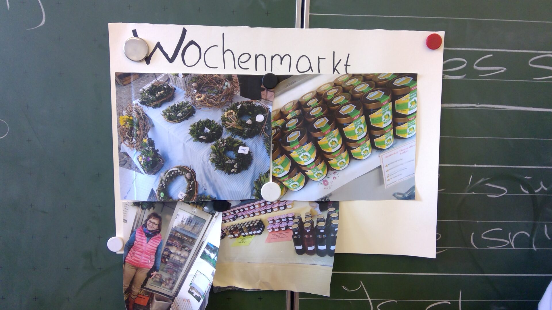 In den jeweiligen Gruppen mussten sie verschiedene Fragen aufschreiben, die sie am nächsten Tag an den Marktständen stellen sollten. Sie gingen auf den Wochenmarkt. Frau Kienberger gab nur noch eine wichtige Information: die Schülerinnen sollten sich um 8:40 wieder am Treffpunkt versammeln, damit sie pünktlich wieder im Klassenzimmer ankämen. Nachdem alle Fragen beantwortet waren, trafen sie sich pünktlich am Treffpunkt und gingen zur Schule zurück.