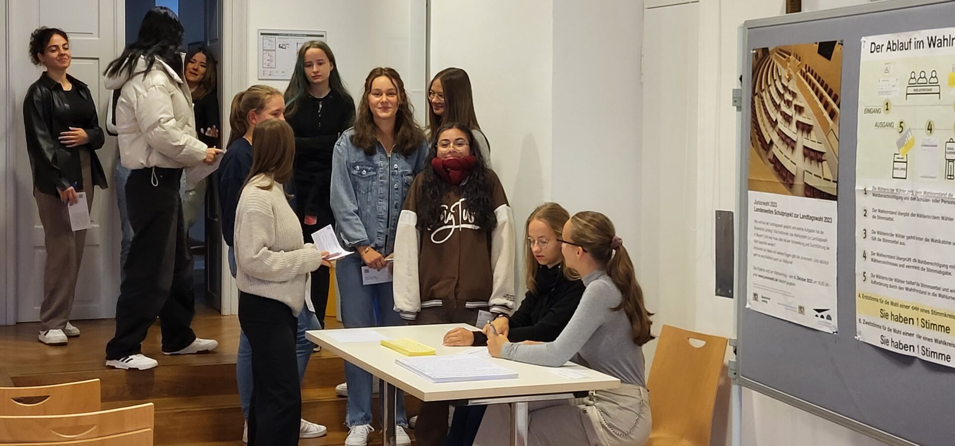 Ja, an unserer Schule geht das! Und das schon vor dem offiziellen Wahltermin in Bayern. Wir sind nämlich eine der Schulen in Bayern, die an derJuniorwahlteilnimmt. Damit unsere Schülerinnen in den nächsten Jahren ihr politisches Wörtchen mitreden, durften die Zehntklässlerinnen schon einmal einen Probelauf absolvieren und wenige Tage vor der diesjährigen Wahl des Bayerischen Landtags in ein improvisiertes Wahllokal an der Schule gehen.