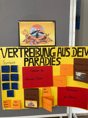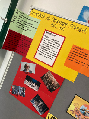Die Oberammergauer Passionsspiele konnten in diesem Jahr endlich wieder stattfinden. Grund genug für die Schülerinnen der Klassen 10a und 10c, sich mit der Geschichte dieser Passionsspiele, vor allem aber mit der Bedeutung der lebenden Bilder in einem von Veronika Strejc initiierten Unterrichtsprojekt auseinanderzusetzen. Die ansprechenden Ergebnisse sind vorübergehend auch im Schulhaus zu sehen.