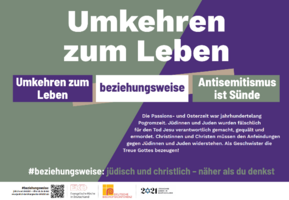 Das aktuelle Themenplakat der ökumenisch verantworteten Kampagne trägt den Titel „Umkehren zum Leben beziehungsweise Antisemitismus“. Aus jüdischer Sicht meldet sich diesen Monat die Rabbinerin Dr.in Ulrike Offenberg zu Wort: