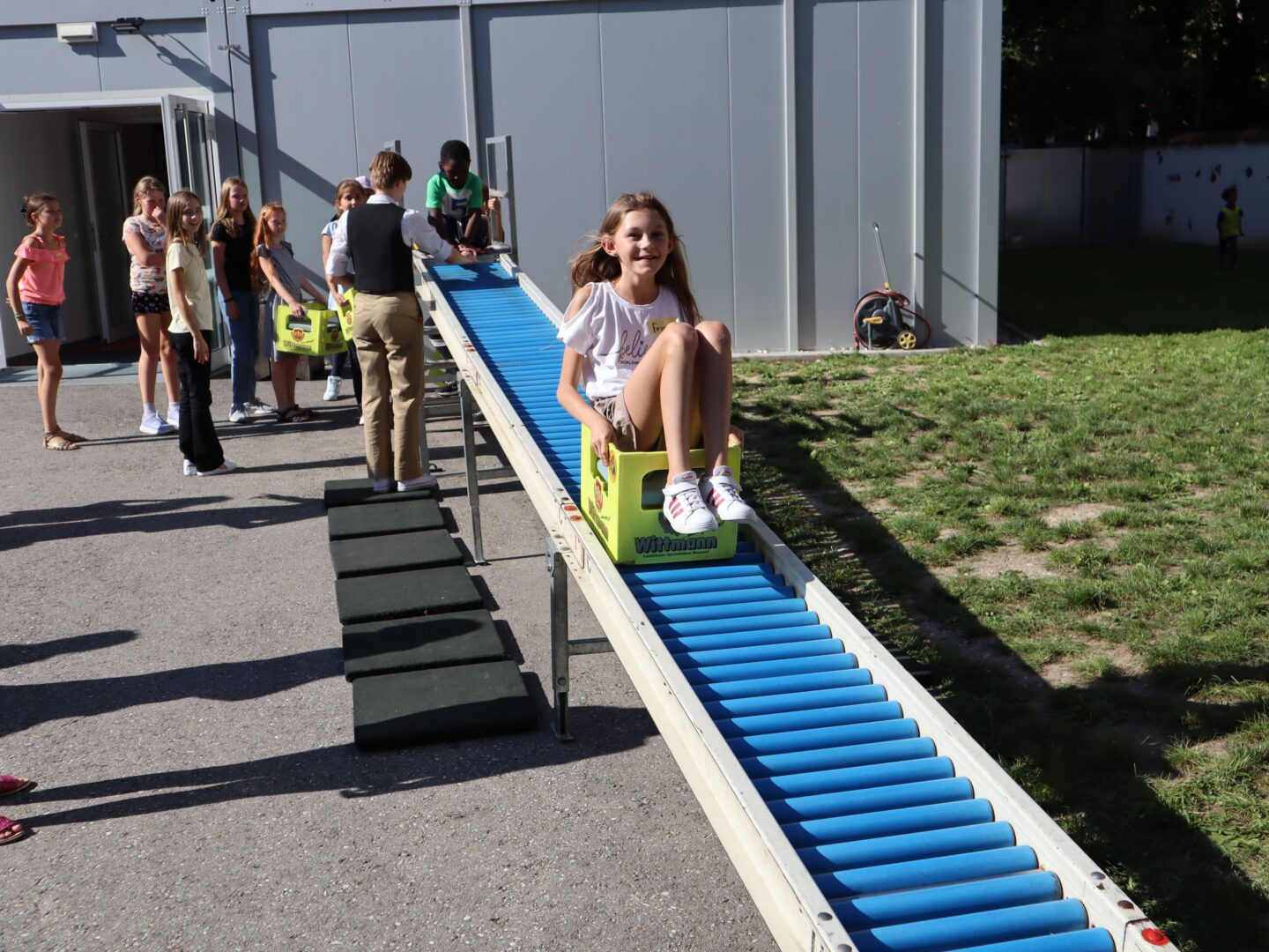 Für die Schülerinnen gab es viele spannende und lustige Aktivitäten, die von unseren engagierten Tutorinnen organisiert wurden. So konnten sie bei einer Schatzsuche das Schulhaus besser kennenlernen, ihre Geschicklichkeit beim Tragerlrutschen oder Stelzenlaufen unter Beweis stellen oder einfach mit Bällen spielen. Außerdem gab es einen Verkauf von fairen Produkten, die von unserer Fairtrade-AG angeboten wurden, sowie eine Vorstellung der Schulkleidung, die unsere Schülerinnen stolz tragen.