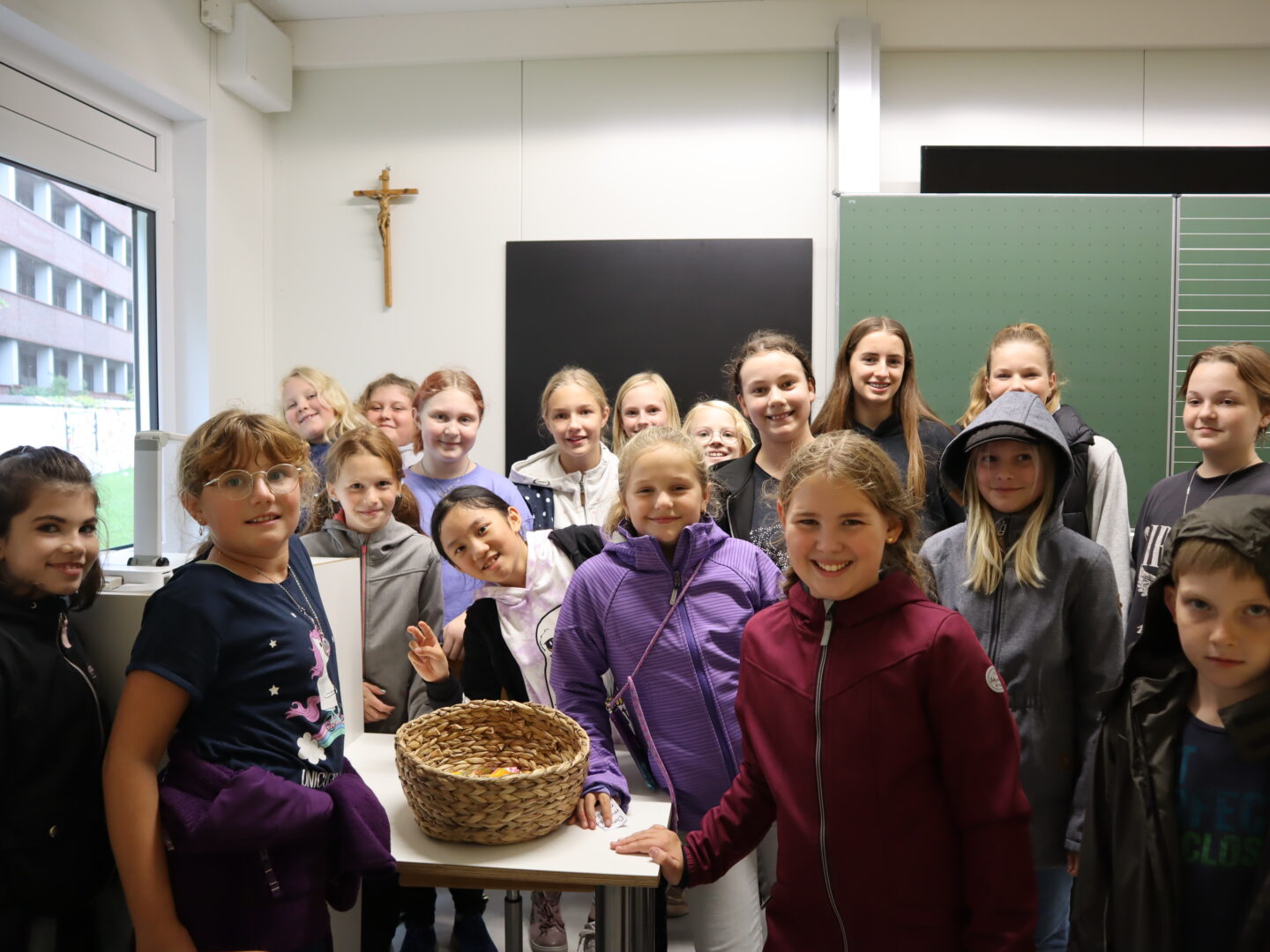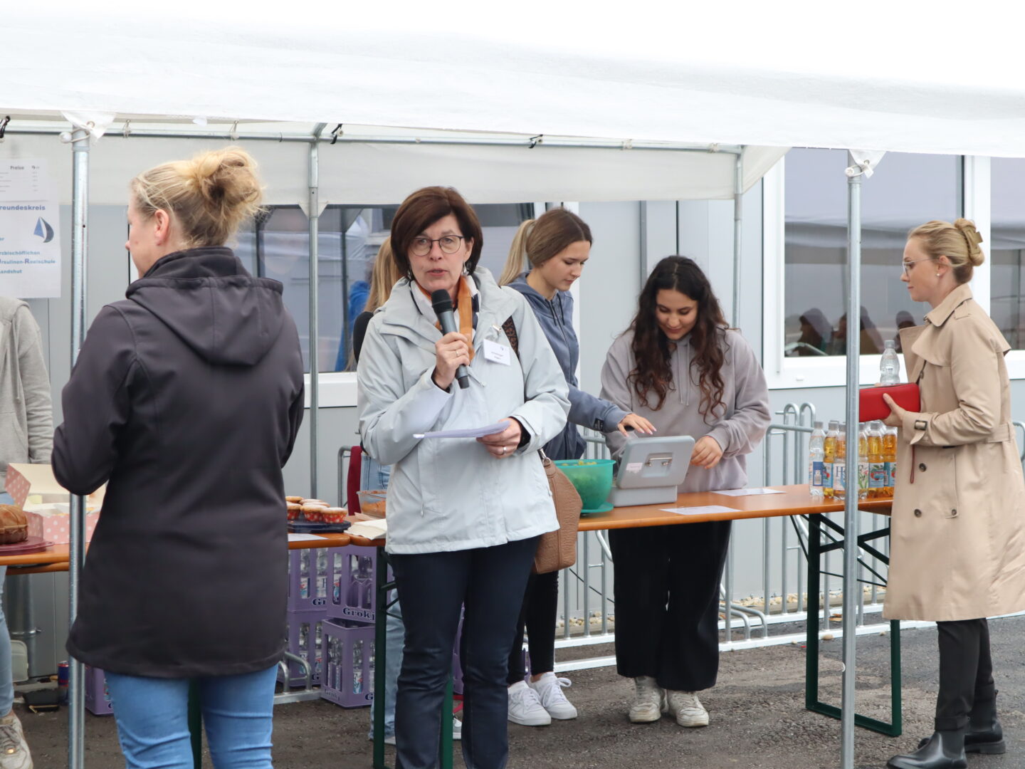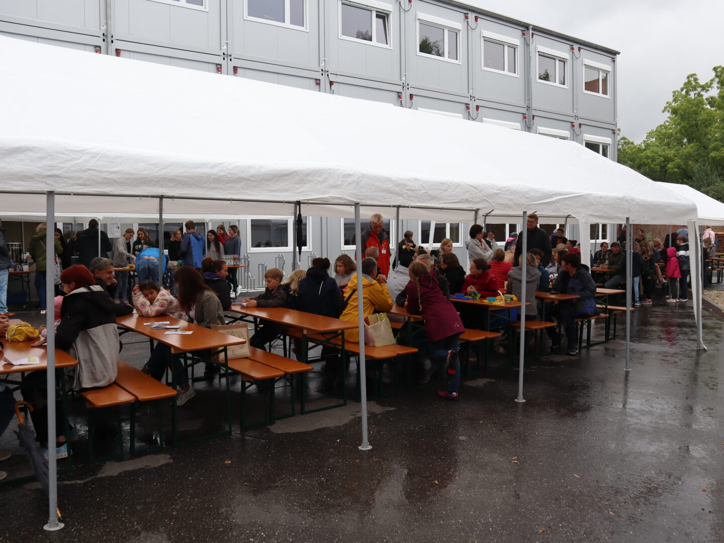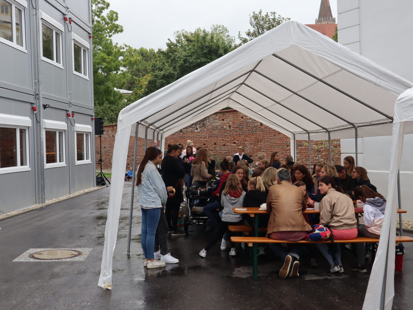Eine Woche lang durften wir unsere „Neuen“ bereits kennenlernen. Doch ebenso wie die Schülerinnen heißen wir auch ihre Eltern an der Ursulinen-Realschule willkommen und luden zum jährlichen Kennenlernfest im Pausenhof der Modulschule ein. Die freundlichen und erheiternden Gespräche zwischen Eltern und Lehrkräften sorgten dafür, dass das etwas mürrische, kalte Regenwetter schnell vergessen war. Immerhin: Auf der Kastenrutsche flutschte man noch schneller hinab. Gas geben konnten die Kinder aber nicht nur draußen, sondern auch bei der Schatzsuche im Schulhaus durch unsere Tutorinnen. Dadurch hatten die Eltern draußen Zeit, sich bei Kaffee und Kuchen in Ruhe auch untereinander kennenzulernen.