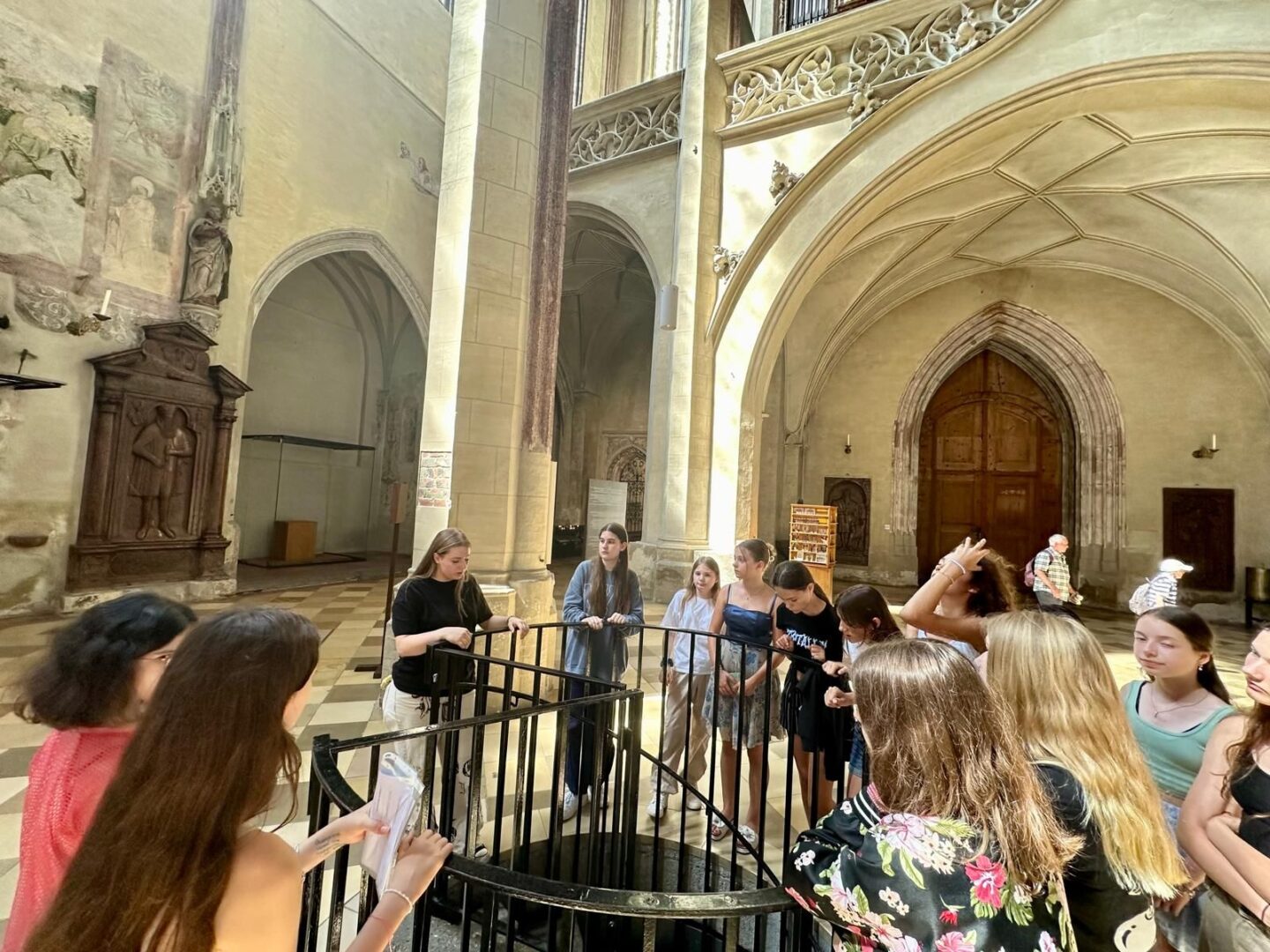 Vor wenigen Tagen machten sich die Klassen 7d und 7e im Rahmen des Kunstunterrichts auf zur Martinskirche, einem der besten Beispiele für gotische Architektur. Dabei gab es aus künstlerischer Sicht sowohl innen als auch außen allerlei interessante Werke zu bestaunen, die wir uns in kleinen Referaten vorstellten. Wir konnten somit viel über die Architektur, die großen Fenster sowie die Wandmalerei erfahren.