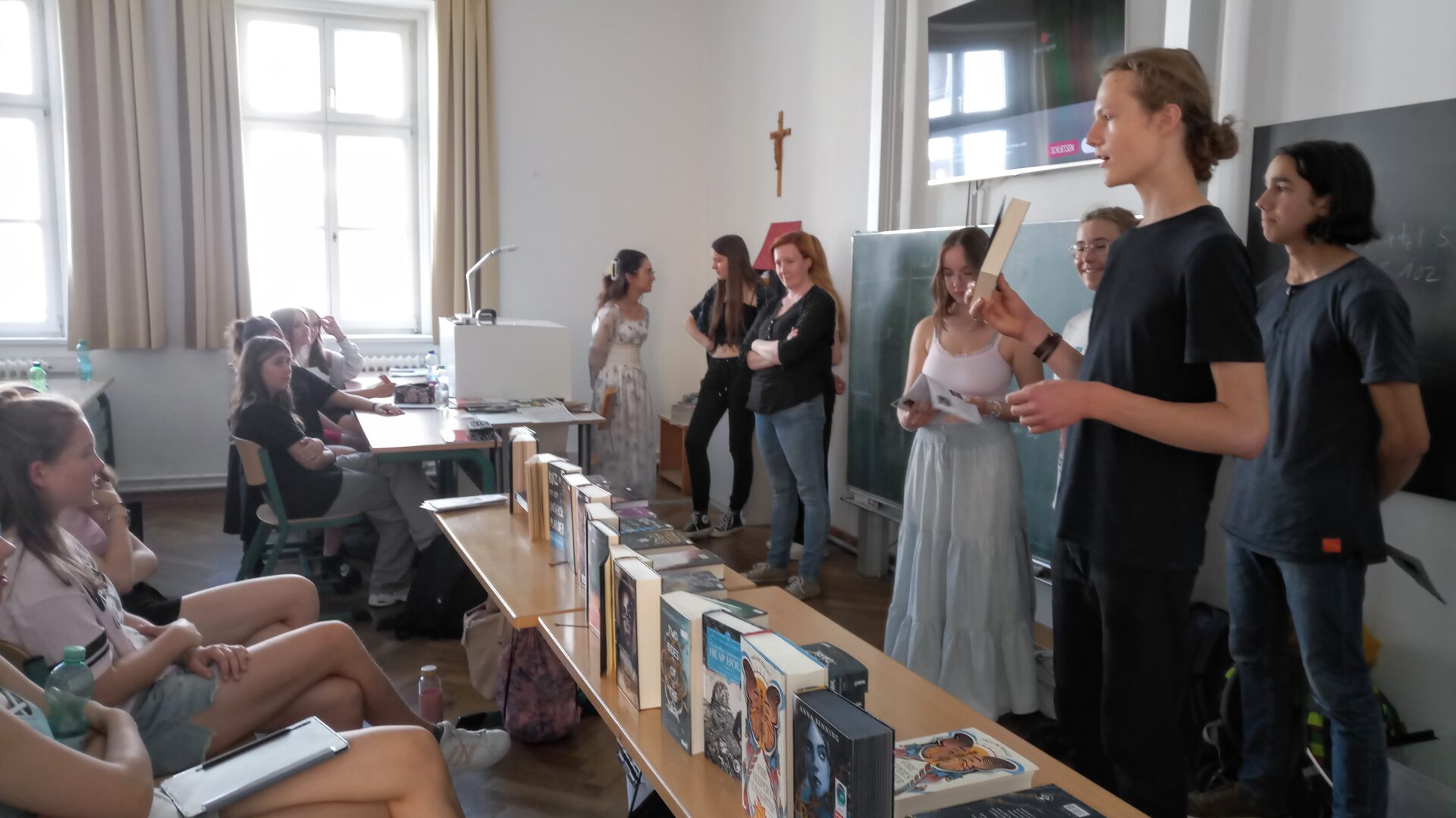 Die eigentliche Jury bestand aus Schulklassen aus Stadt und Landkreis Landshut, deren Deutschlehrer sich für das Leseprojekt angemeldet hatten. Eine davon war dieaktuelle Klasse 10b unserer Schule, die sich im Juli des vergangenen Schuljahrs intensiv mit den fünfzehn Büchern beschäftigt hat. Die Schülerinnen und Schüler haben die Bücher in und außerhalb des Klassenzimmers gelesen, bewertet und diskutiert.