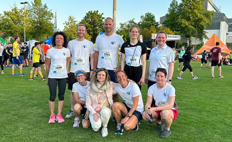 Unser Team hatte im Vorfeld einige Ab- und Ummeldungen zu verkraften, aber dank des kurzfristigen Einspringens von Claudia Peine und Veronika Schachtner konnten wir vollzählig antreten. Wir freuten uns auch über das Wiedersehen mit Leni Albrecht, einer ehemaligen Schülerin unserer Schule, die ebenfalls am Firmenlauf teilnahm.