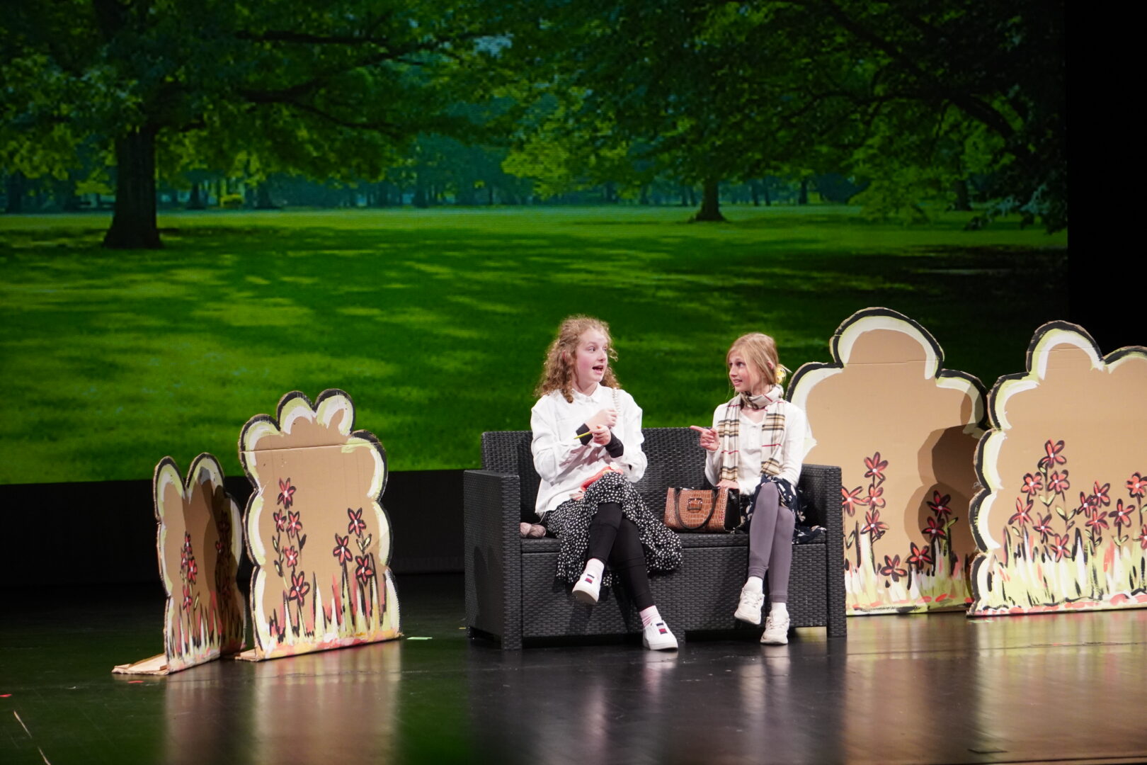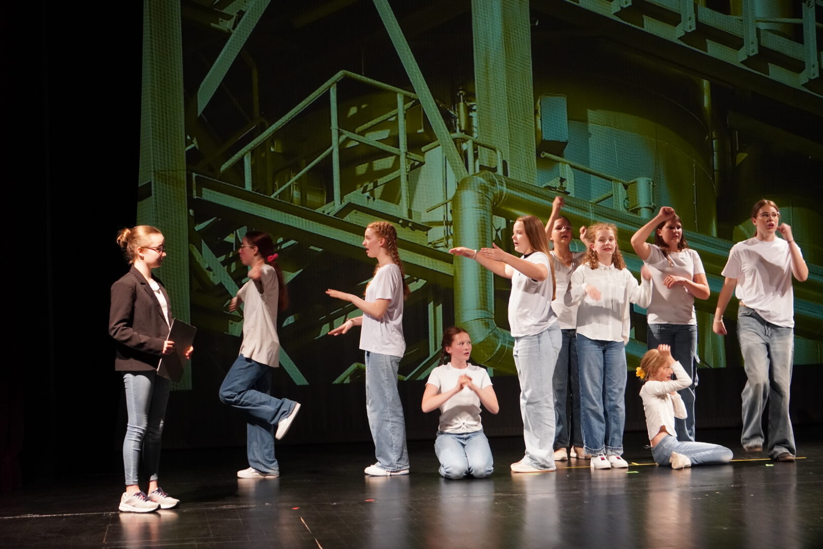 Doch! Genau das tat die Schulspielgruppe beimTheaterfestival der niederbayerischen Realschulen am 8. Mai im Theater „Am Hagen“ in Straubing– und das auf hervorragende Weise! Nach einem humorvollen wie auch anregenden Workshop zum Thema Improvisationstheater bei Bernhard Müller Schnepf, einem professionellen Schauspieler, ging es nachmittags an die Stellprobe. Dabei konnten die Schülerinnen auf einer riesigen Bühne unter gleißendem Scheinwerferlicht vor 330 Sitzplätzen echte Theaterluft schnuppern, bevor es um 19 Uhr schließlich so weit war: Sieben bayerische Realschulen zeigten ihr Können. Das abwechslungsreiche Programm begeisterte das Publikum mit unterschiedlichen Formen des Theaterspiels wie Greenscreen- und Schwarzlichttheater, Komödie, Drama sowie Krimi als auch gekonnten Eigenproduktionen. Unsere Mädchen der Schulspielgruppe bewiesen, dass es auch möglich ist, ganze Szenen nur mit Wörtern desselben Anfangsbuchstabens zu bestreiten. Sie präsentierten Geschichten von „hirnlosen Halunken“, „prompten Produktionskostensenkungen“, einem „robusten Rübchen“ sowie „warmherzigen Weihnachtsgrüßen“, die das Publikum bestens unterhielten und den Schülerinnen großen Applaus einbrachten.