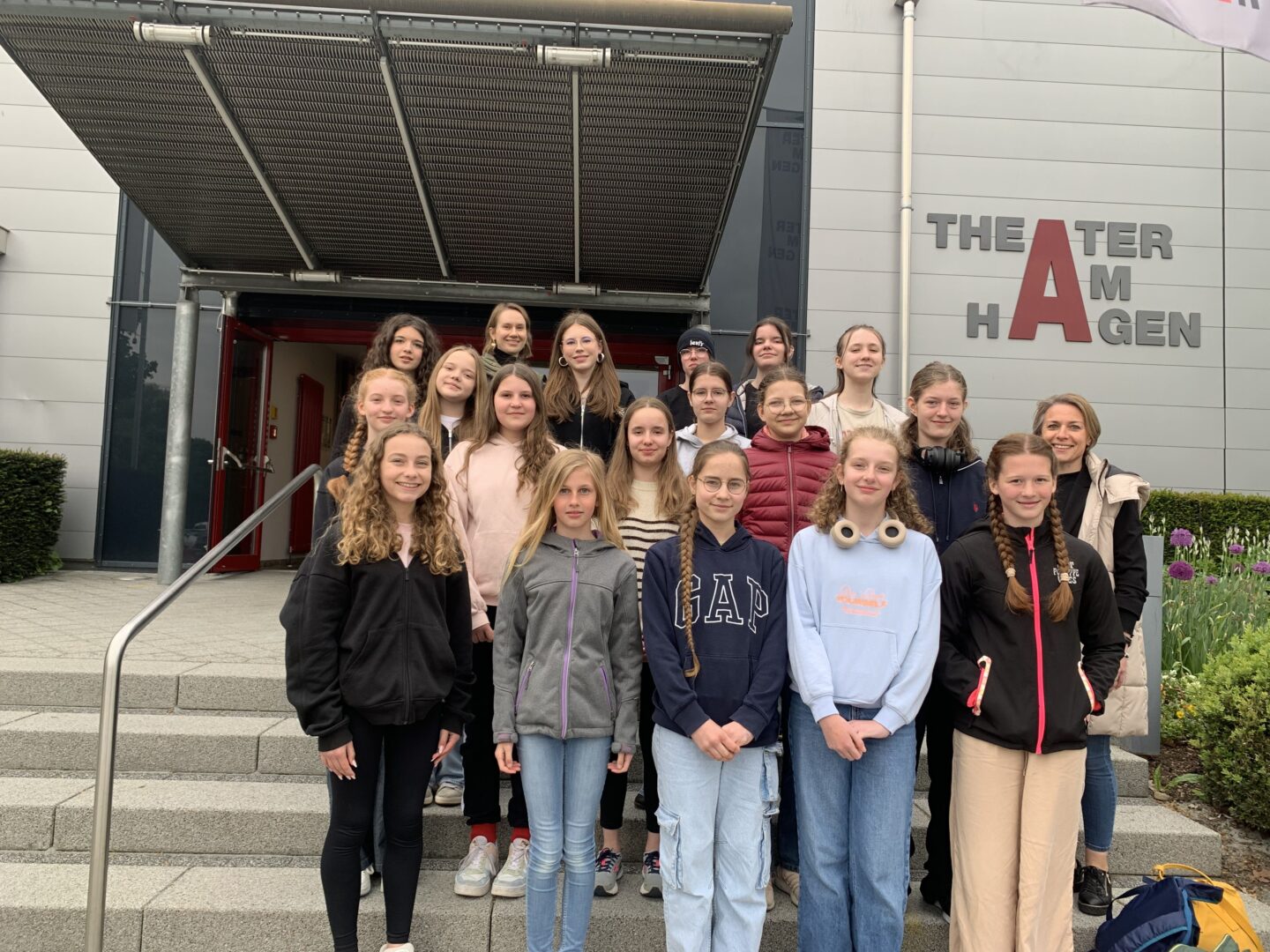 Doch! Genau das tat die Schulspielgruppe beimTheaterfestival der niederbayerischen Realschulen am 8. Mai im Theater „Am Hagen“ in Straubing– und das auf hervorragende Weise! Nach einem humorvollen wie auch anregenden Workshop zum Thema Improvisationstheater bei Bernhard Müller Schnepf, einem professionellen Schauspieler, ging es nachmittags an die Stellprobe. Dabei konnten die Schülerinnen auf einer riesigen Bühne unter gleißendem Scheinwerferlicht vor 330 Sitzplätzen echte Theaterluft schnuppern, bevor es um 19 Uhr schließlich so weit war: Sieben bayerische Realschulen zeigten ihr Können. Das abwechslungsreiche Programm begeisterte das Publikum mit unterschiedlichen Formen des Theaterspiels wie Greenscreen- und Schwarzlichttheater, Komödie, Drama sowie Krimi als auch gekonnten Eigenproduktionen. Unsere Mädchen der Schulspielgruppe bewiesen, dass es auch möglich ist, ganze Szenen nur mit Wörtern desselben Anfangsbuchstabens zu bestreiten. Sie präsentierten Geschichten von „hirnlosen Halunken“, „prompten Produktionskostensenkungen“, einem „robusten Rübchen“ sowie „warmherzigen Weihnachtsgrüßen“, die das Publikum bestens unterhielten und den Schülerinnen großen Applaus einbrachten.Wer nun Lust bekommen hat zu erfahren, welche Geschichten sich hinter den restlichen Buchstaben des Alphabets verstecken, ist herzlich zur Aufführung des kompletten Stücks „A und O und alle anderen“ am 10. Juli in der Turnhalle unserer Schule eingeladen.