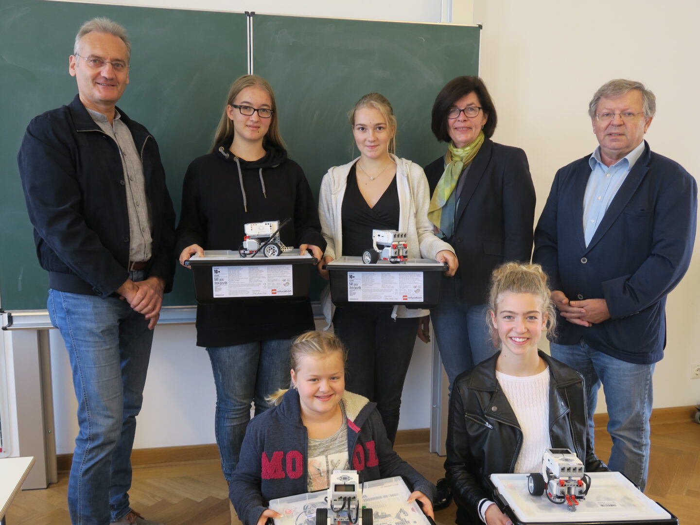Kürzlich hat der Freundeskreis unserer Schule vier weitere Lego-Baukästen an die Schülerinnen übergeben. Damit kann der Wahlunterricht nun mit insgesamt neunzehn Robotern gestaltet werden. Notwendig wurde die Aufstockung kurzfristig, da die Nachfrage nach diesem Wahlfach auch oder gerade an einer reinen Mädchenschule von Jahr zu Jahr größer wird. Für den ersten Vorsitzenden Rudolf Hutterer war es eine Selbstverständlichkeit, die Schülerinnen mit dieser Spende zu unterstützen.