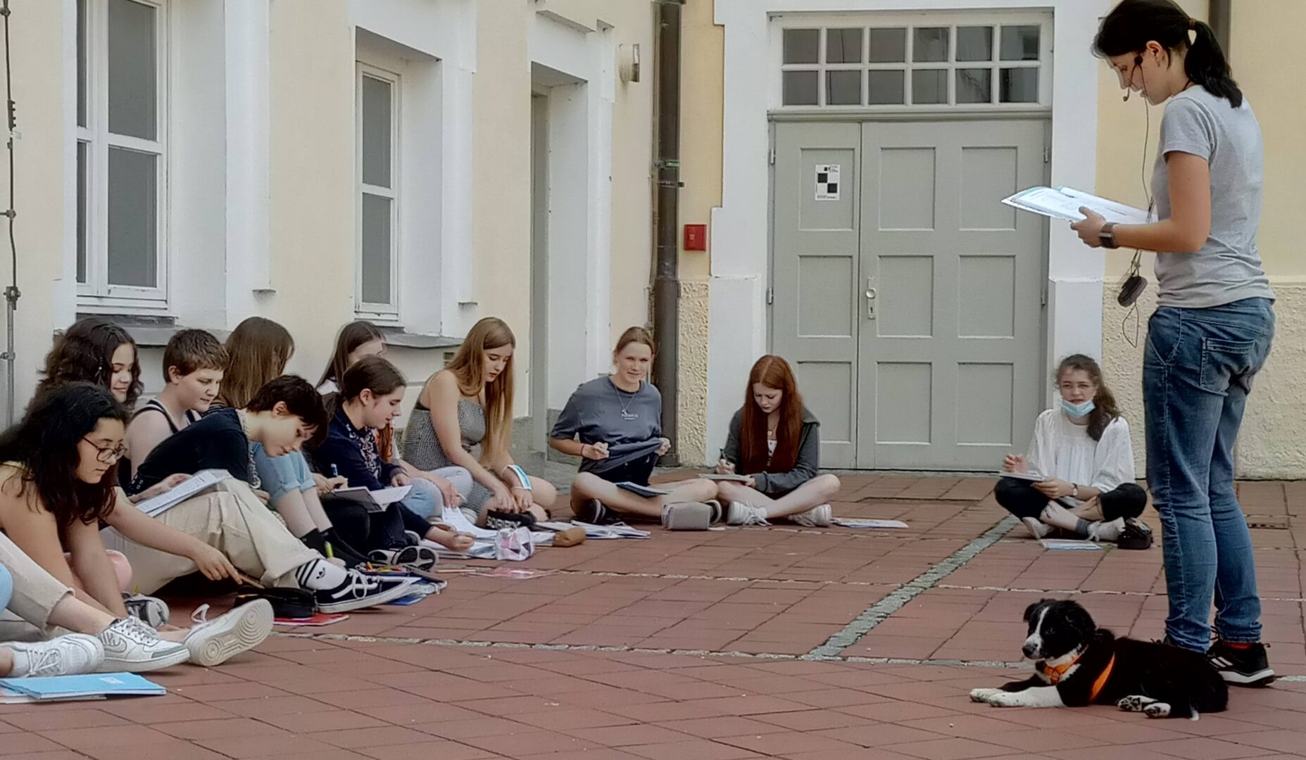 "Meine Izzy würde mir sicher was zukommen lassen! Sie ist so selbstlos, wenn ich die Wäsche aufhänge und mir a Wäscheklupperl runterfällt, hebt sie mir es auf. Ohne Gegenleistung und ohne dass ich ihr je explizit gesagt hätte, dass sie das tun soll." - So trittChristina Webereiner aktuellen Studie des WissenschaftsmagazinsPlos Oneentgegen, wonachHunde undankbare Schmarotzerseien, die nur nähmen, aber nie gäben. Nicht nur ihre Izzy trat als anglophiler Vierbeiner imFachschaftsvideound amKleinkunstabend der Schulevor einigen Jahren auf, nein seit dieser Woche begleitetChessdie Englischlehrerin an die Schule und fungiert in diesen letzten Tagen vor den Sommerferien als Schulhund im Klostergarten. Chess, das ist ein zehn Wochen alter Border Collie, der in Webers Englischstunden dafür sorgt, dass kurz vor den Sommerferien - Wortspielalarm! - der Hund nicht begraben liegt. Ihren Schülerinnen gefällt's und alle anderen sich im Klostergarten tummelnden Schülerinnen lernen schnell, dass sie leise sein müssen - schließlich habenBorderCollies, wie ihr Name bereits verrät, die ursprüngliche Aufgabe, den Schafen dieGrenzenaufzuzeigen. Angst muss übrigens niemand vor Chess haben, denn das Einzige, was Border Collies jagten - so Weber - , seien Autos. Von denen gibt es im Klostergarten glücklicherweise nicht besonders viele...