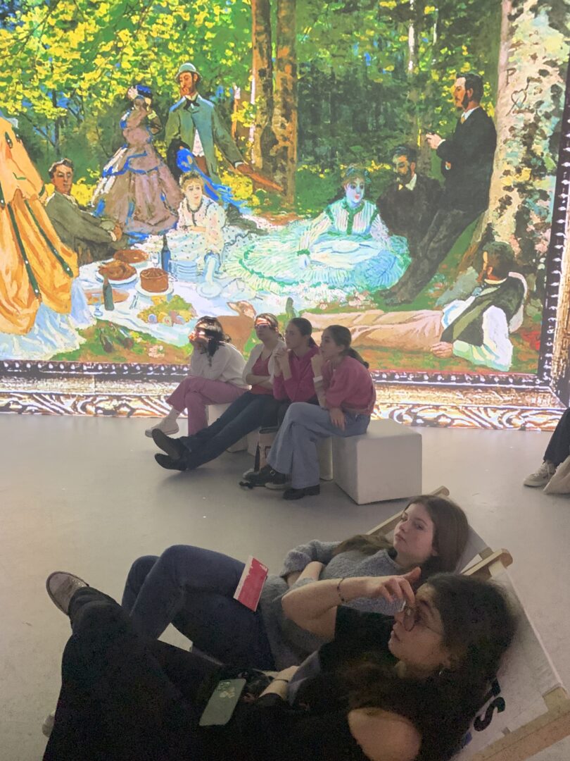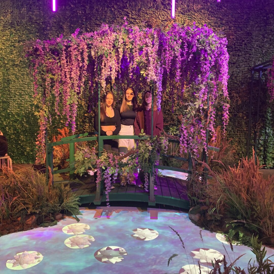 tauchten die höheren Klassen des Kunstzweigs während einer immersiven Ausstellung in München in die Werke des französischen Malers Claude Monet ein.Seine impressionistische Kunst sowie seine Biografie wurden den Mädchen mit einem Film, der sich imposant über alle Wände eines Raumes erstreckte, nähergebracht. In einer Kreativecke gestalteten die Schülerinnen eigene Seerosen, die dann digitalisiert und in das Wasser eingebaut wurden, über dem sich eine Brücke befand. Von dieser aus konnten die Mädchen dann ihre zum Leben erweckte Blütenpracht bestaunen!