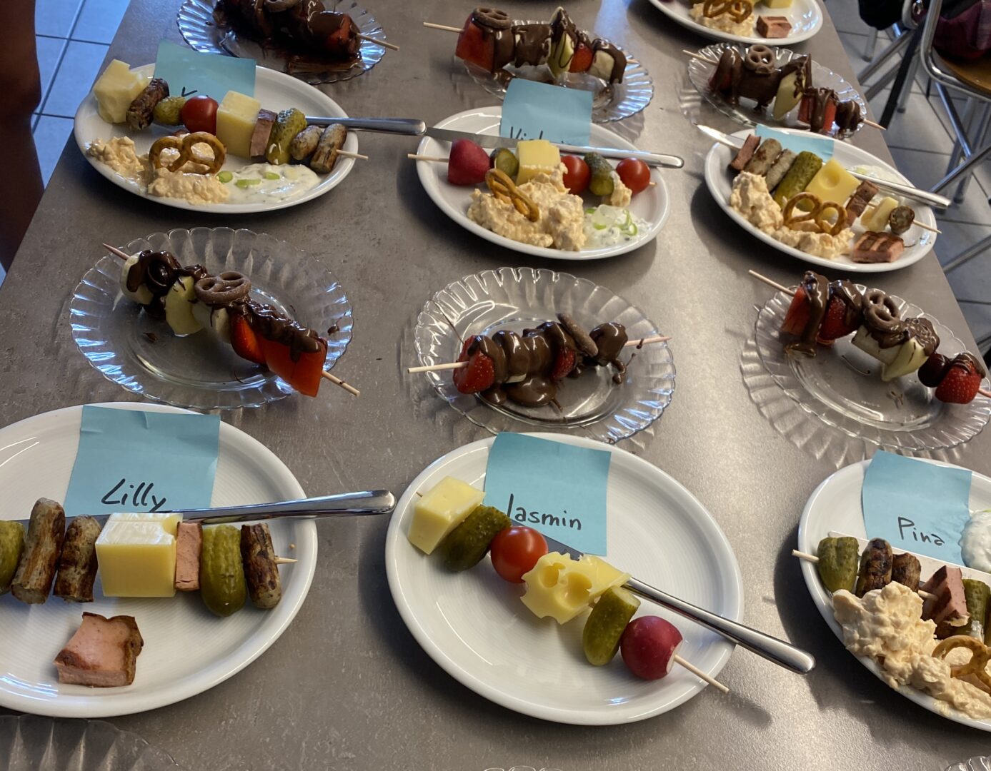 Die Schülerinnen gestalteten auch die Tische liebevoll und kreativ. „Viele Köchinnen verderben den Brei nicht, sondern das Kochen im Team macht viel Spaß und ist erstaunlich produktiv“, fasste Judith Wöss den Tag zusammen. Alle waren überrascht, wie viel in der kurzen Zeit zubereitet wurde.