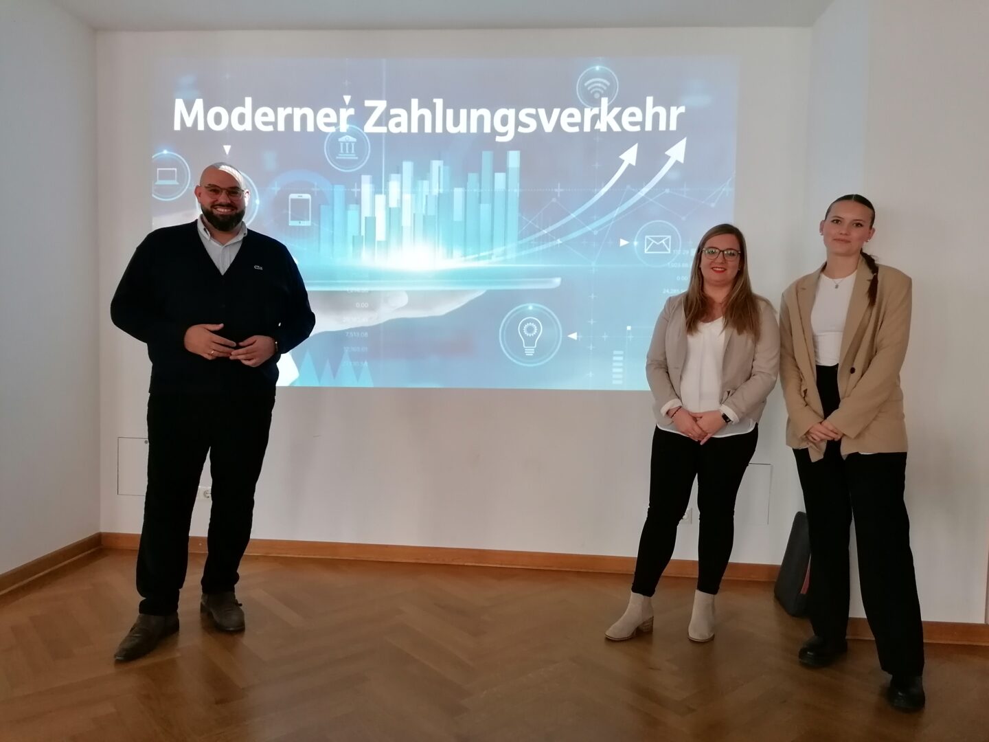 Die beiden Vortragenden wurden von der AuszubildendenNicole Ruhlandunterstützt, die unseren Schülerinnen gerne Fragen zum Thema Praktikum oder Berufsausbildung bei der Sparkasse beantwortete. Mit Ruhland und Günzkofer konnten wir gleich zweiehemalige Schülerinnenbei uns bzw. an „ihrer alten Schule“ begrüßen.
