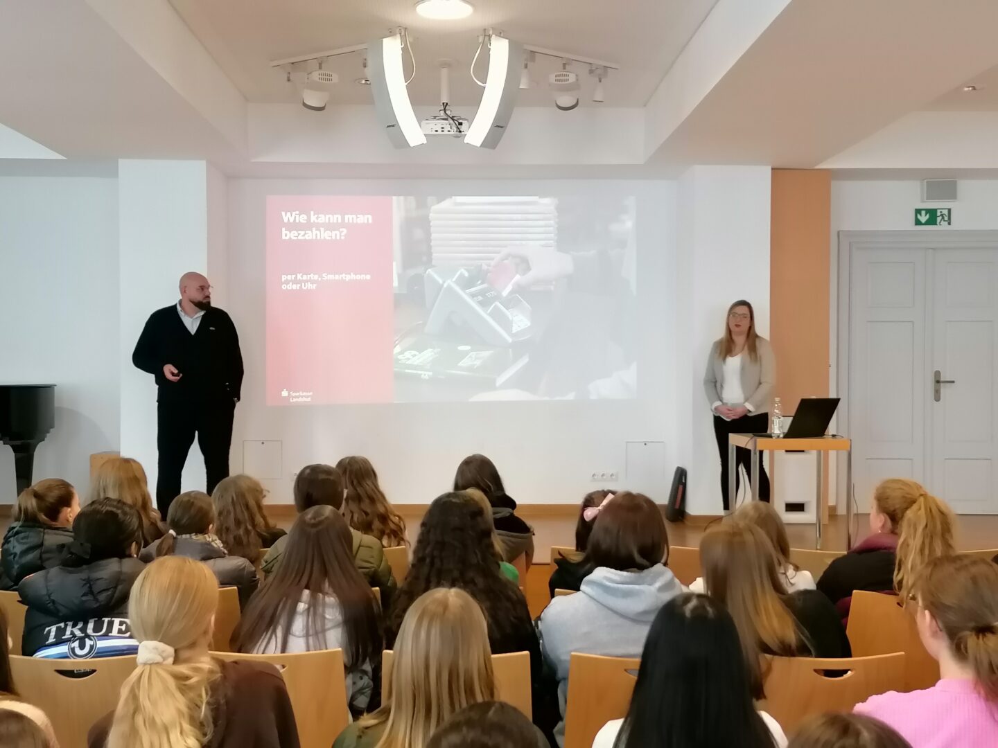 Diese Frage können die Klassen 7b, 7c, 9a, 9e und 9f nach dem Expertenvortrag der beiden ReferentenWenke GünzkoferundAlexander Satzlvon derSparkasse Landshutzum Thema „Moderner Zahlungsverkehr“ nun beantworten: Zur Abbuchung der monatlichen Abo-Kosten für Streaming-Dienste muss ein Girokonto bei einer Bank oder Sparkasse vorhanden sein. In diesem Zusammenhang erklärten die Geld-Profis auch den Unterschied zwischen Dauerauftrag und Lastschriftverfahren ebenso wie modernste Zahlungsvorgänge via giropay.Ein Girokonto ist in unserem Alltag Voraussetzung, um am täglichen Wirtschaftsleben teilzunehmen: Ob Taschengeld, Lohn- bzw. Gehaltszahlung, die Begleichung einer Rechnung per Überweisung oder die Zahlungsmöglichkeit mit einer Smartwatch – das persönliche Girokonto ist Dreh- und Angelpunkt für all diese Transaktionen.Zur Eröffnung eines Bankkontos sind lediglich Ausweis und Unterschrift bei volljährigen Personen notwendig, bei Kindern und Jugendlichen müssen ihre gesetzlichen Vertreter zustimmen.Die beiden Vortragenden wurden von der AuszubildendenNicole Ruhlandunterstützt, die unseren Schülerinnen gerne Fragen zum Thema Praktikum oder Berufsausbildung bei der Sparkasse beantwortete. Mit Ruhland und Günzkofer konnten wir gleich zweiehemalige Schülerinnenbei uns bzw. an „ihrer alten Schule“ begrüßen.