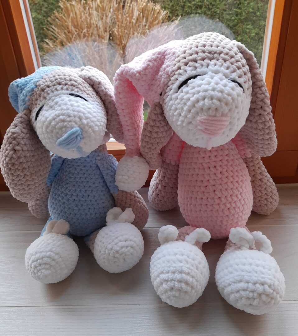Wir setzten uns mit Kissen, Decken und einem spannenden Hörbuch auf eine blau bezogene Matratze und häkelten und häkelten und … häkelten. Stunde um Stunde verging und es wurde Abend. Schließlich war es so weit, Das letzte Teil war angenäht, unsere gehäkelten, neuen, flauschigen Freunde aus Chenillewolle waren fertig.