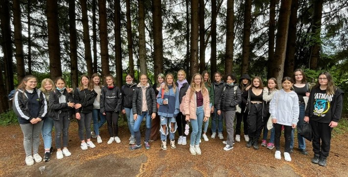 Am 25. Mai besuchten die Klassen 9b und 8b gemeinsam den Wildpark in Poing. Trotz leichten Regens konnten sich nach nur kurzer Zeit alle für die freilaufenden Rehe und Mufflons begeistern. Das Füttern der Wildtiere von der Hand war für einige Schülerinnen ein ganz neues und spannendes Erlebnis. Viele haben dabei die Erfahrung gemacht, ihre Futtertüte aufmerksamer zu bewachen, damit kein freches Mufflon die gesamte Tüte frisst.Die Schülerinnen nutzen die freie Zeit, den Wildpark in kleinen Gruppen kennen zu lernen und die heimischen Tiere genauer zu bestaunen.Auch die Greifvogelschau, bei der Storch, Wanderfalke und Co. die Hauptdarsteller sind, konnte noch teilweise miterlebt werden.