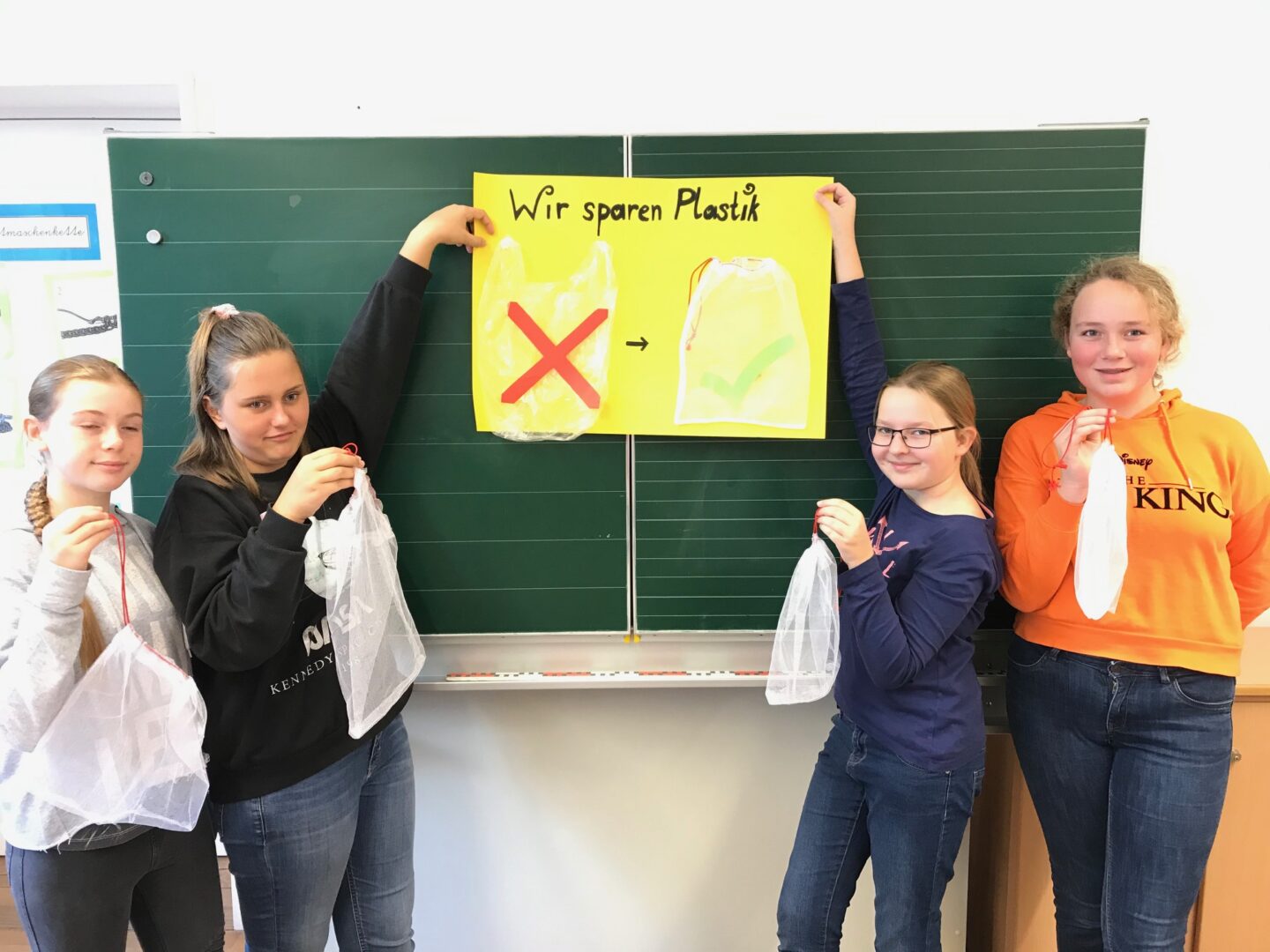 Sechsmal ließe sich die Erde mit Plastiktüten einpacken. Und zwar mit jenen sechshundert Milliarden, die alljährlich produziert werden. Wollen wir von dieser riesigen Plastikhülle eingewickelt sein? - Die Schülerinnen der siebten Klasse haben diese Frage nicht nur mit einem entschiedenen Nein beantwortet, sondern zusammen mit Anja Ottl in "Ernährung und Gesundheit" auch gleich eine Alternative hergestellt. Mit den selbst genähten und wiederverwertbaren Obst- und Gemüsesäckchen können nun beim Einkauf für zu Hause und in der Schule viele Plastiktüten eingespart werden. Damit liefern wir auch einen Beitrag zur diesjährigen Woche der Gesundheit und Nachhaltigkeit.