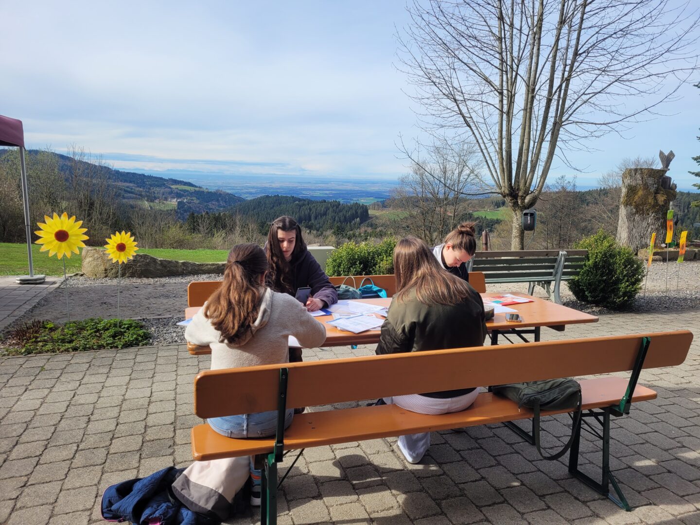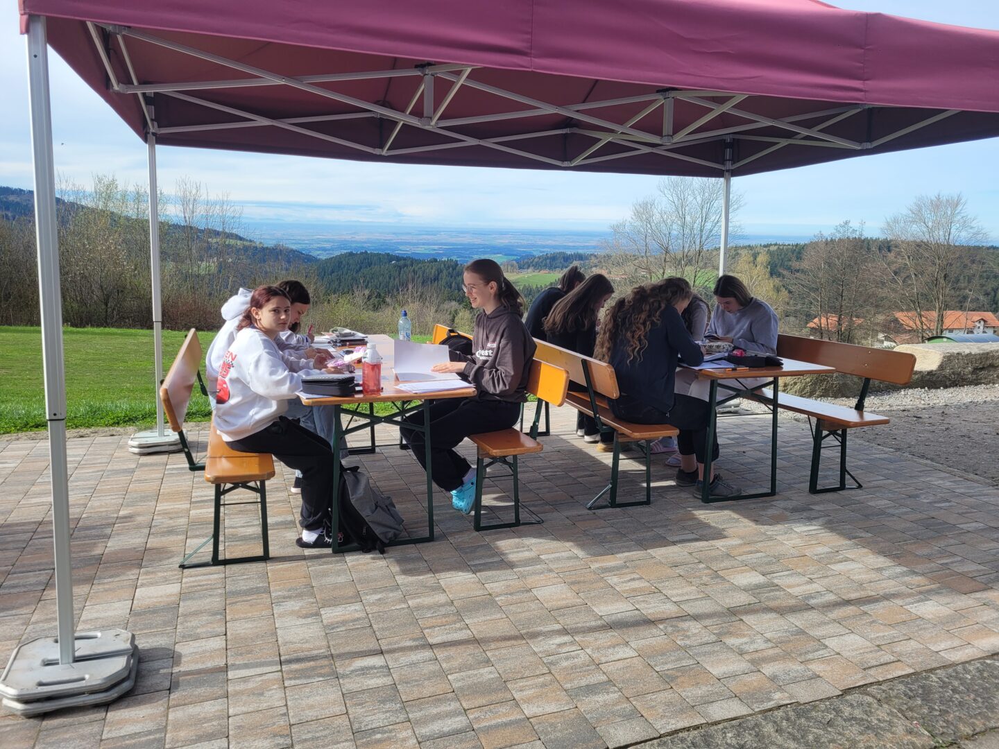 Dies war einer der Leitsprüche während der „Ora-et-labora“-Fahrt unserer Zehntklässlerinnen, den sie auf Radiergummis gedruckt zu Beginn vorfanden. Während für die restlichen Schülerinnen in den Ferien wohl hauptsächlich Ausschlafen und Entspannen auf dem Plan steht, machten sich in zwei Gruppen unterteilt über 100 Mädchen auf nach Sankt Englmar, um zwischen Anspannung und Entspannung zu wechseln. Anspannung, denn diese drei Tage sollten zur Vorbereitung auf die Abschlussprüfung in Mathematik dienen. Daher wurde gerechnet, bis die Köpfe rauchten. Entspannung, denn Herr Bauch eröffnete zusammen mit seiner Frau den Schülerinnen in schulpastoralen Impulsen z.B. Oasen der Erholung und zog Parallelen zwischen der aktuellen Situation der Teilnehmerinnen und biblischen Überlieferungen. Das herrliche Wetter sorgte dabei beim Lernen nicht nur für eine tolle Aussicht in die Ferne, sondern auch in eine positive Abschlussprüfungszeit.