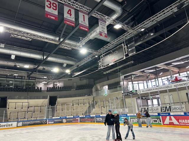 Ein besonderes Erlebnis war heuer der Ort des Geschehens: Statt auf der überdachten Außenfläche durften unsere Eisläuferinnen direkt in die geschlossene Eishalle, in der normalerweise der Spielbetrieb der Eishockey-Profis stattfindet. Das sorgte für staunende Gesichter und echte Stadion-Atmosphäre. Die Schülerinnen konnten hautnah sehen, wo die Spieler aus den Kabinen kommen und wo sich der VIP-Bereich befindet. Eine Schülerin, die selbst eine Dauerkarte besitzt, nutzte die Gelegenheit stolz, um ihren Mitschülerinnen ihren Stammplatz auf der Tribüne zu zeigen.