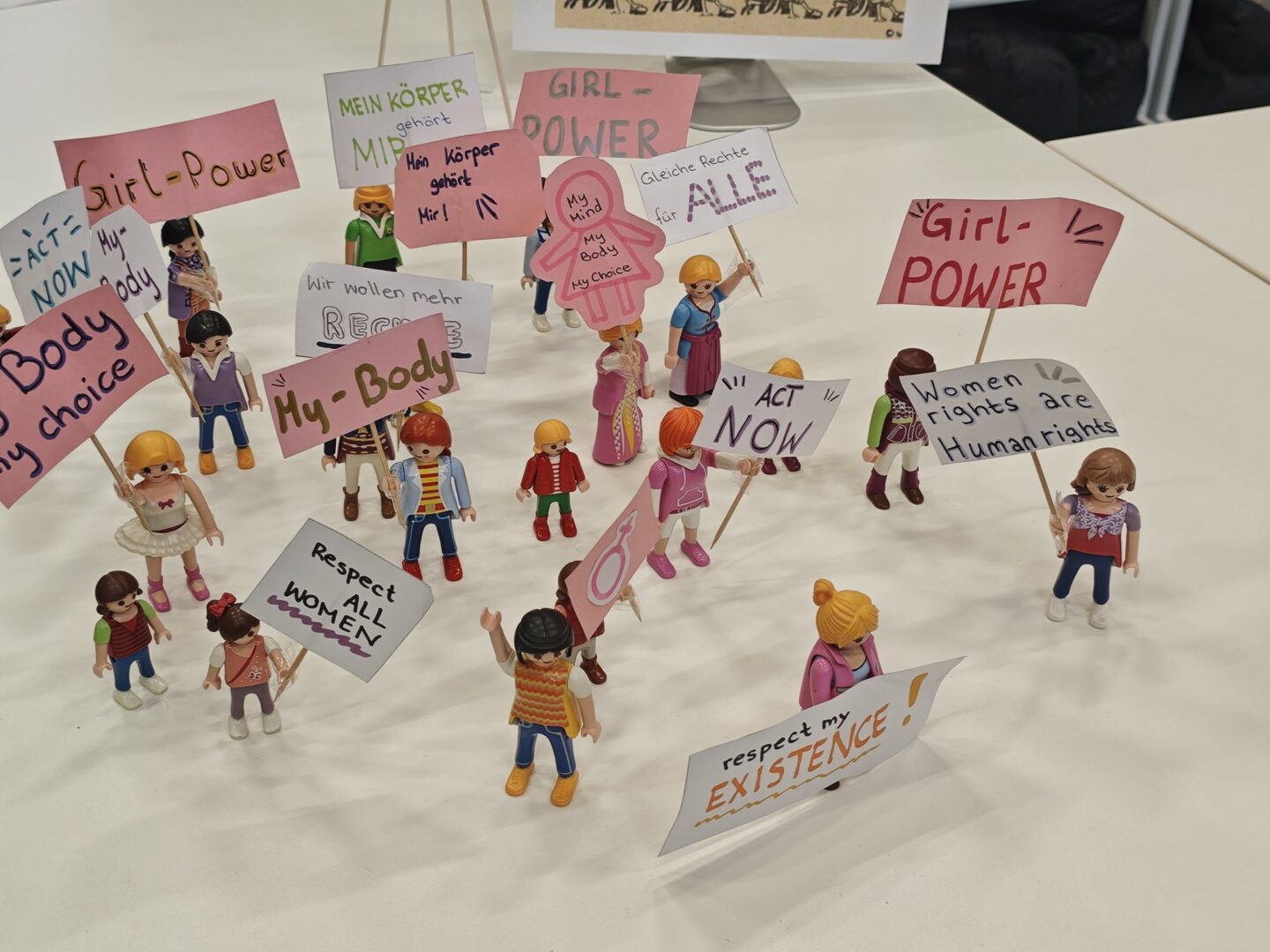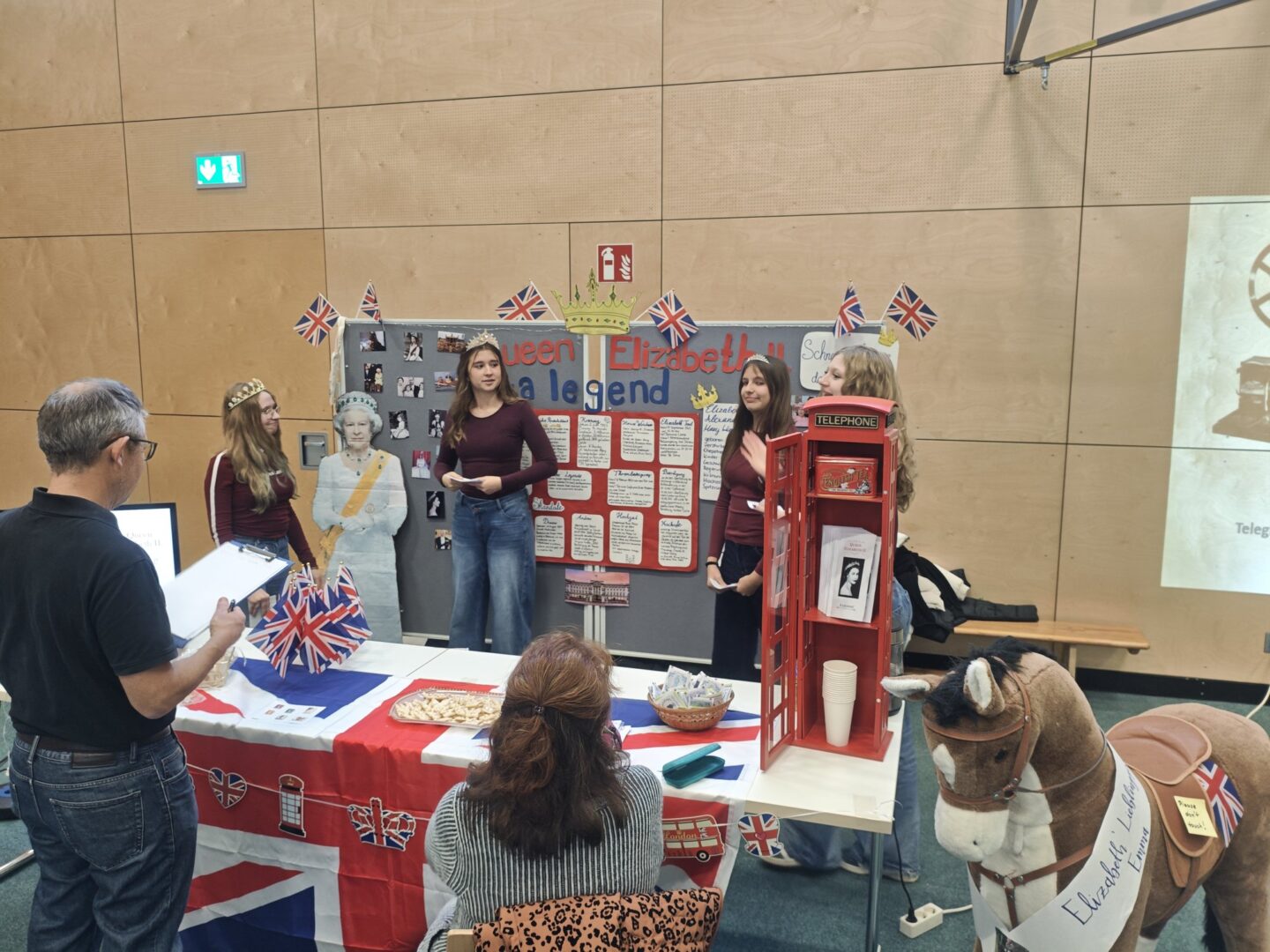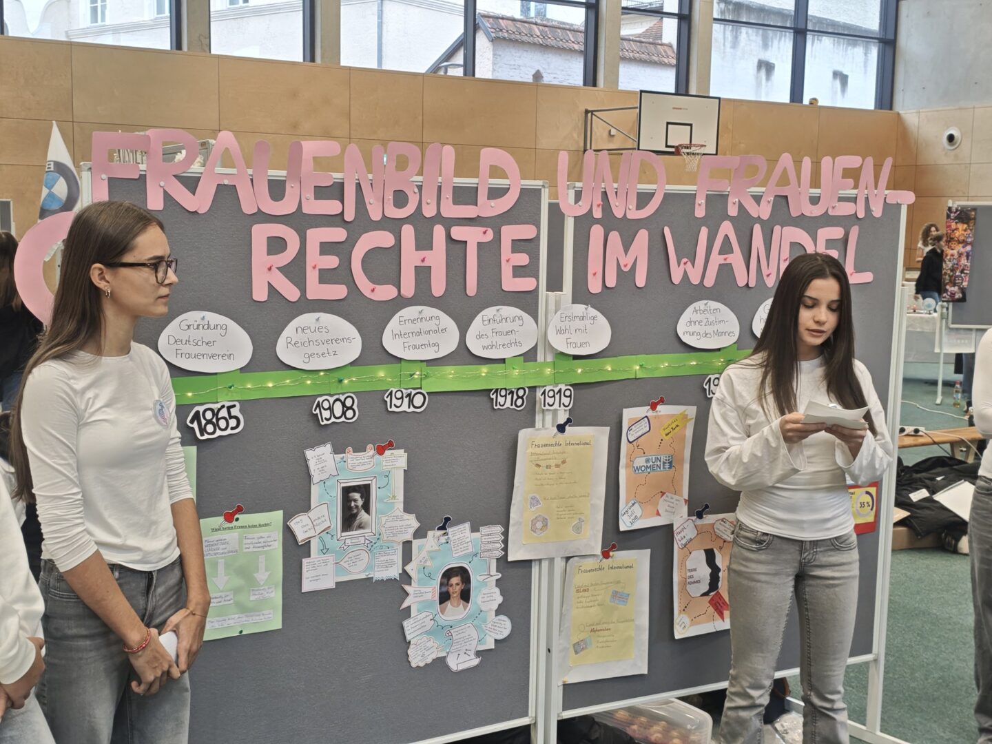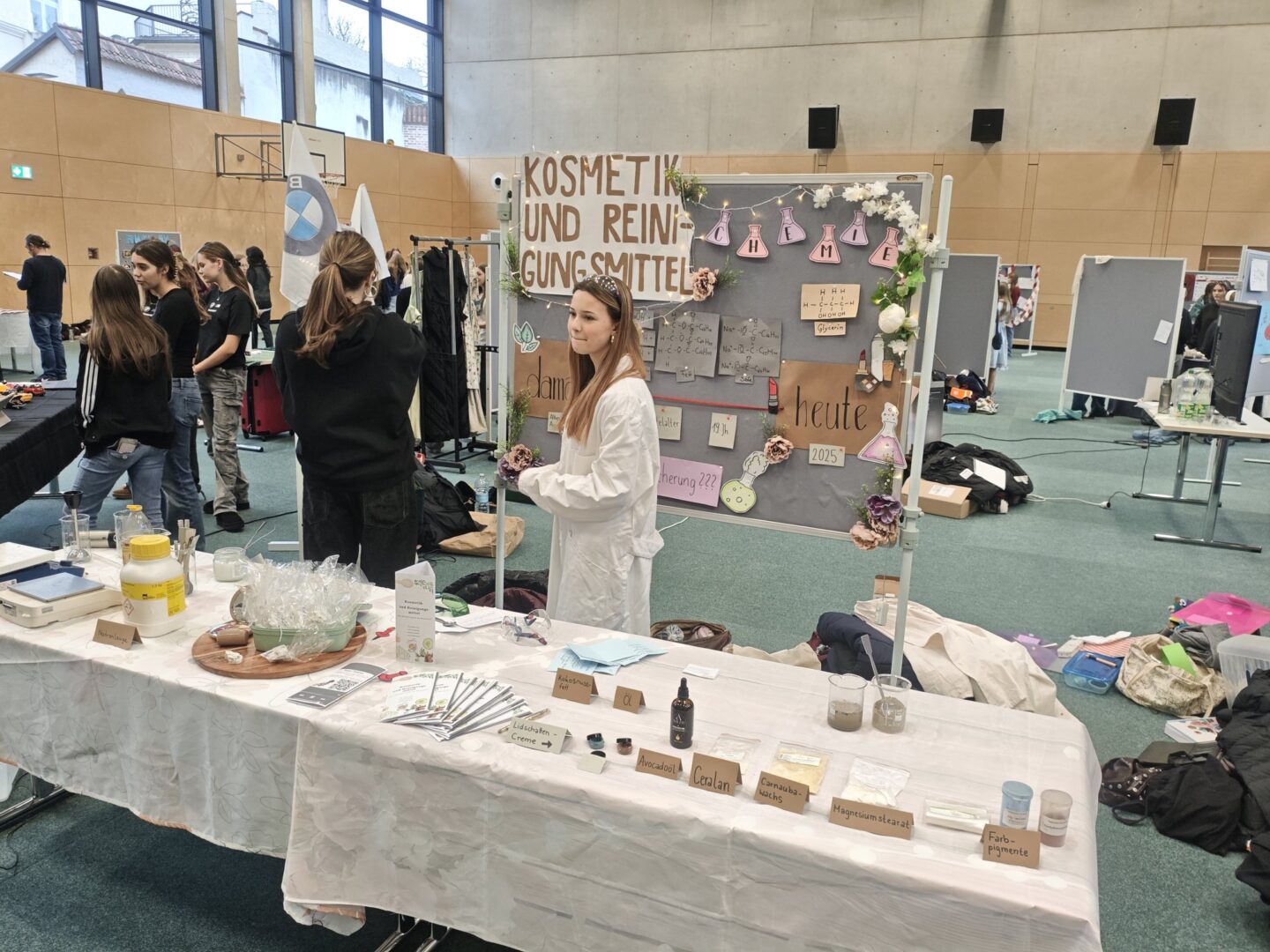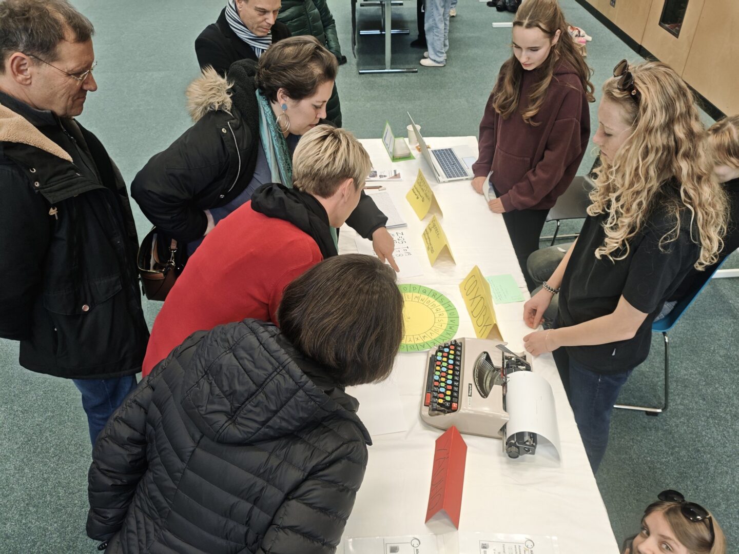 Zeitenwende, Klimawandel, Transformation – im Alltag ist ein Wandel der Zeit täglich zu spüren. Auch unsere Neuntklässlerinnen machten sich zu diesem Thema Gedanken und beschäftigten sich über mehrere Wochen in und außerhalb der Schule intensiv mit einem für sie persönlich interessanten Aspekt hierzu. Heraus kamen dabei nicht nur kreativ gestaltete Messestände, die von Lehrkräften, Schülerinnen und Familie bestaunt werden durften, sondern auch gut recherchierte und anschauliche Vorträge. Während des Rundgangs konnte man so beispielsweise während einer Breakdance-Vorführung ein handsigniertes Olympia-Trikot von Severin Freund bestaunen, sich mit selbstgemachten Lidschatten aufhübschen, in die Welt der Royals eintauchen oder Reiseinspirationen für die Ostsee sammeln.