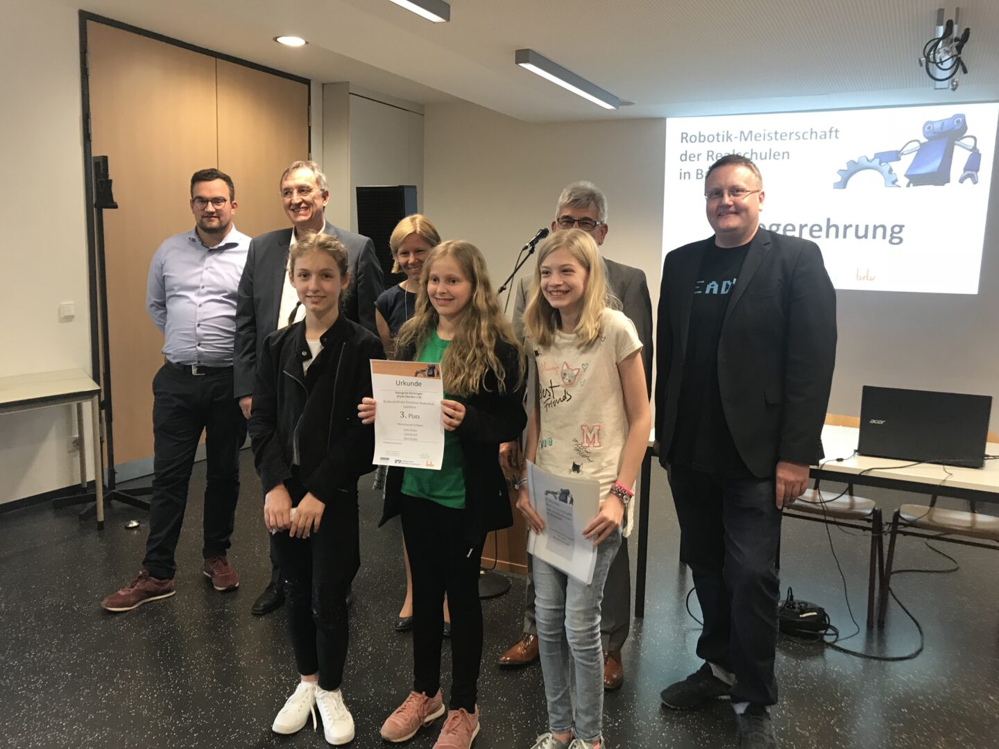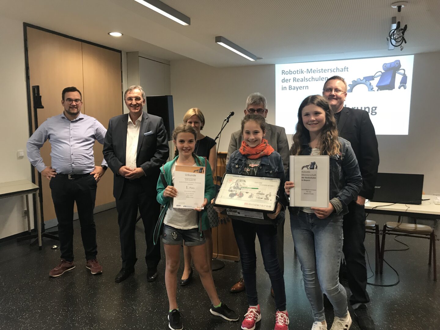 Vor kurzem fanden an der Johann-Simon-Mayr-Realschule in Riedenburg die Robotik-Meisterschaften der niederbayerischen Realschulen statt. Zum zweiten Mal schon nahm auch ein Team unserer Schule am Wettbewerb teil und erreichte in der Kategorie Einsteiger (Farb-Checker 2.0) den ersten und dritten Platz. Kristin Börsch, Jule Saffert und Ronja Gehrig holten sich souverän den Sieg, Julia Huber, Julia Kreisl und Elisa Hoxha komplettierten das erfreuliche Gesamtergebnis. Bernhard Aschenbrenner, Ministerialbeauftragter für die Realschulen in Niederbayern, zeigte sich sehr beeindruckt davon, dass insgesamt 22 Mannschaften von 10 Realschulen aus seinem Aufsichtsbezirk an diesen Meisterschaften teilgenommen hatten.