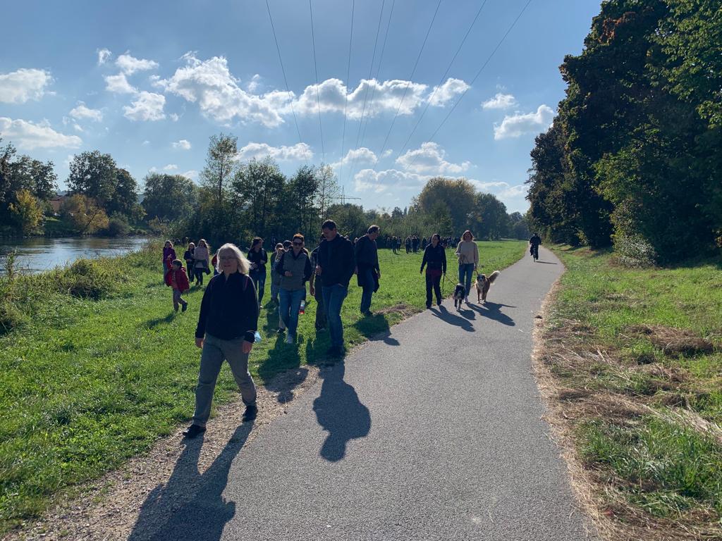 Einen besseren Start in die Familienwanderung konnten sich die Teilnehmer nicht ausmalen: Sonniges Wetter, gut gelaunte Fünftklässlerinnen mit ihren Eltern und Lehrkräfte mit tierischer Unterstützung. Bevor die Gruppe losmarschierte, trafen sich alle im Schulhof, um sich mit einer von Herrn Bauch erzählten Geschichte und Teelichtern auf die Wanderung einzustimmen. Dann ging es los!Entlang der Isar spazierend konnte man sich unterhalten, lachen oder einfach die frische Luft schnuppern. Einen kurzen Zwischenstopp gab es am Wasser, denn dort durften die Mädchen Papierschiffchen ins Wasser und somit ein Zeichen für ihre Wünsche setzen. Am Spielplatz Mitterwöhr konnten die Schülerinnen noch einmal das Zusammensein ausgelassen genießen, bevor der Rückweg angetreten wurde. Am Schulhaus angekommen belohnten sich die fleißigen Wanderer mit Kaffee und Kuchen.