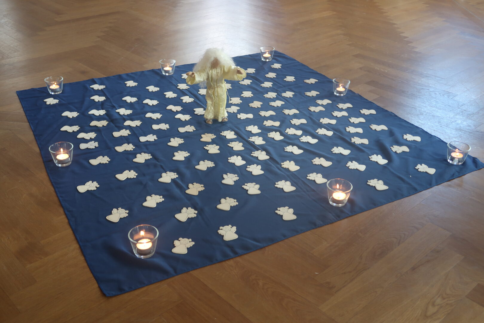 Wieder im Schulhaus zurück gab es bei Kaffee und Kuchen eine verdiente Stärkung. Ein kleiner Engel verdeutlichte, dass wir auf unserem Weg durch das Schuljahr mit vielem Unbekannten und Neuem von Gott begleitet sind.