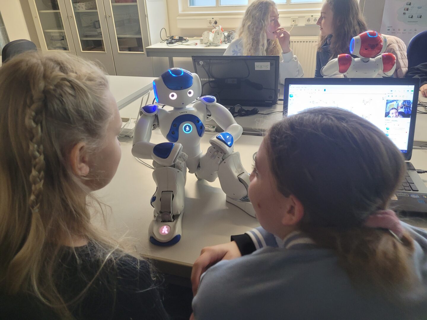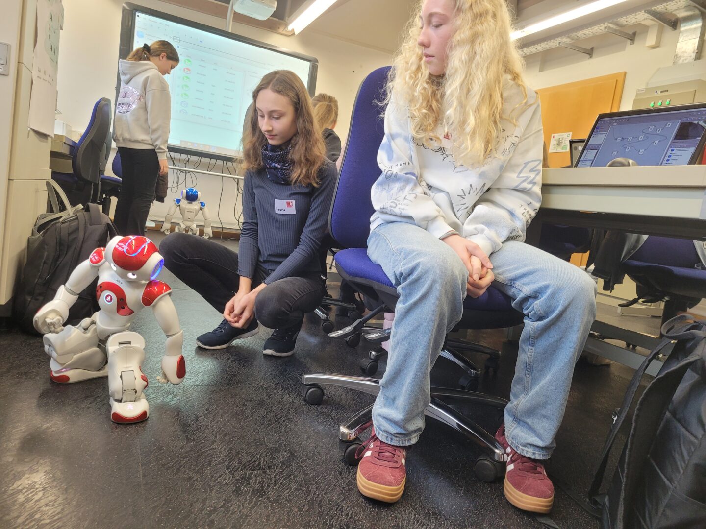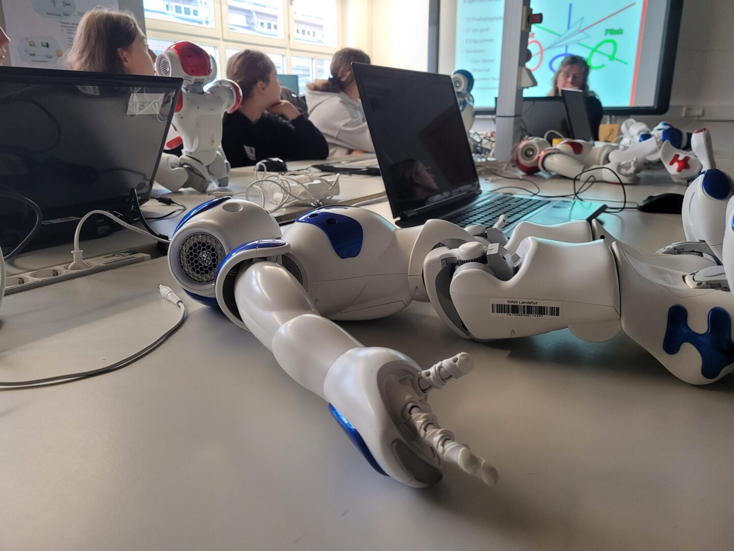 Roboter, die aussehen wie Menschen, die sprechen wie Menschen, die sich bewegen wie Menschen, kennt man aus diversen Sciencefiction-Filmen. Mit humanoiden Robotern in direkten Kontakt sind jedoch nur wenige bisher gekommen. Daher war die Freude bei 16 technikbegeisterten Ursulinen-Schülerinnen natürlich groß, als sie erfuhren, diese bei einem Besuch an der Hochschule Landshut selbst programmieren zu dürfen. Denn all das beeindruckende Können zeigen Roboter nur, wenn man es ihnen vorab am Computer vorgegeben hat. Nach einer allgemeinen Einweisung legten die Mädchen den anfänglichen Respekt schnell ab und erstellten schrittweise Programmschleifen, um mit den NAOs namens Lenny, Alice und Co. kommunizieren und sie zum Tanzen anleiten zu können.