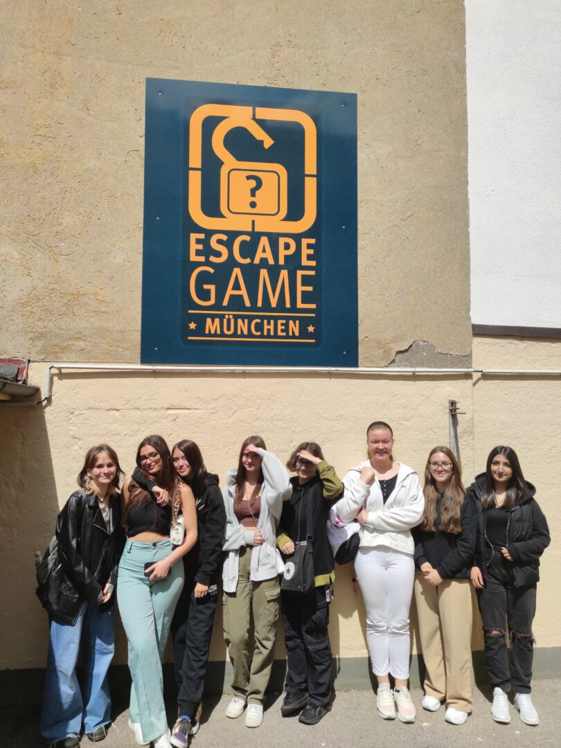 München, der Stern des Südens und die Weltstadt mit Herz. Oder eher eine Metropole voller Geisterschlösser, Mumien, Zauberer und Tresorknacker? Die Klasse 9c durfte beides kennen lernen. Pünktlich und dank dem 9 € – Ticket preisgünstig ging es vom Bahnhof aus Richtung Süden. Diese Ruhepause im Zug war auch bitter nötig, denn als erster Punkt stand ein Escape Room auf dem Programm. Dabei handelt es sich um ein Abenteuerspiel, bei dem eine Gruppe aus mehreren Personen innerhalb von 60 Minuten eine Mission lösen muss. Um aus dem aufwendig dekorierten Raum fliehen zu können, gilt es in Teamarbeit z.B. Logikrätsel zu entschlüsseln, Gegenstände zu suchen und miteinander zu kombinieren. Aber die Mädchen meisterten ihre Aufgabe gut und entkamen Tutanchamun und Co. Nach einer Stärkung mit italienischer Teigware aller Art führte der Weg durch den englischen Garten vorbei am chinesischem Turm und Monopteros hin zu den wagemutigen Surfern an der Eisbachwelle. Klar, ehe um 17 Uhr dem weltberühmten Glockenspiel am alten Rathaus gelauscht werden konnte, durfte Freizeit zum Erkunden der Altstadt nicht fehlen.