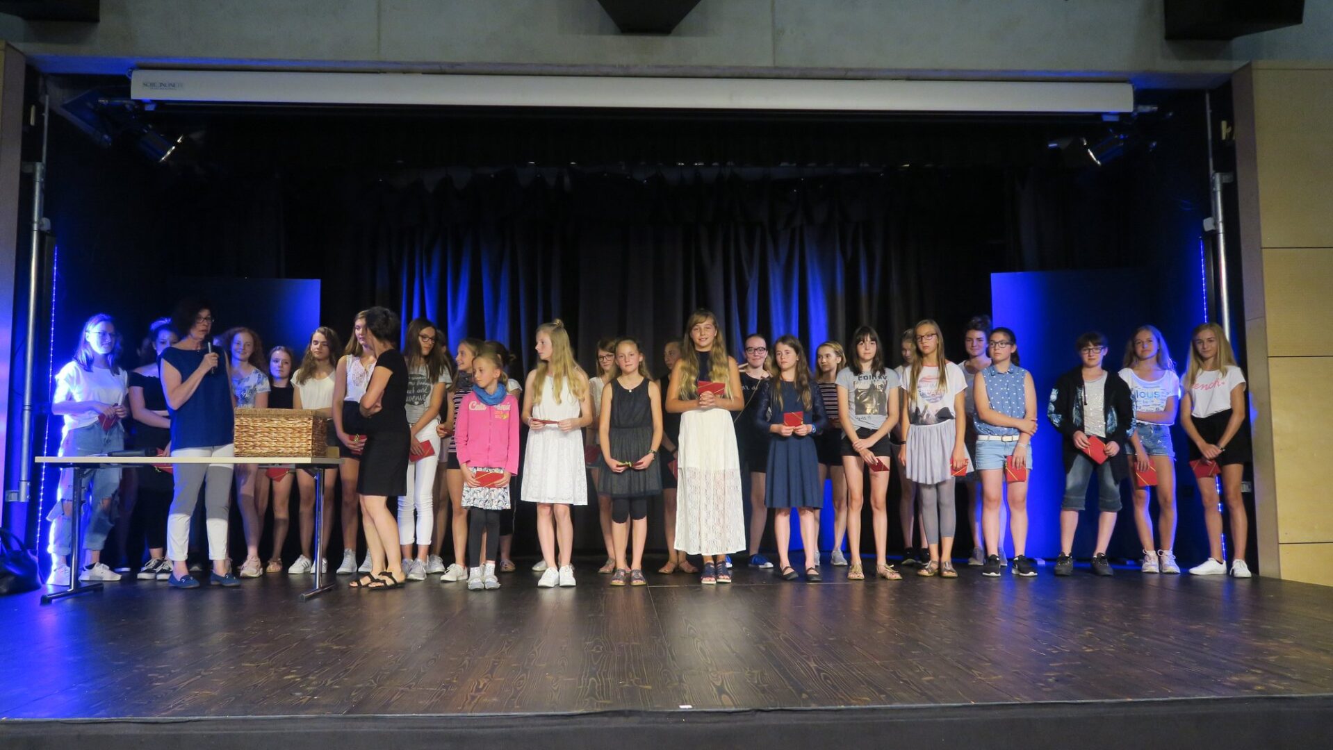 sowie Roboterprogrammiererinnen, Hausaufgabenmeisterinnen, Bild-des-Monats-Künstlerinnen, Fairtradelerinnen, Verbraucherprofis, Landeswettbewerbsmathematikerinnen, Deutsche-Meisterinnen, StadtradlerInnen, Jahnkämpferinnen, Känguruspringerinnen, Gründerspielerinnen, Büchereibetreuerinnen und natürlich die Klassenchampions – sie alle wurden am letzten Schultag in der Turnhalle beglückwünscht und beklatscht. Nach der Zeugnisvergabe und dem Abschied voneinander ging’s dann endlich hinaus in die ersehnten Sommerferien.