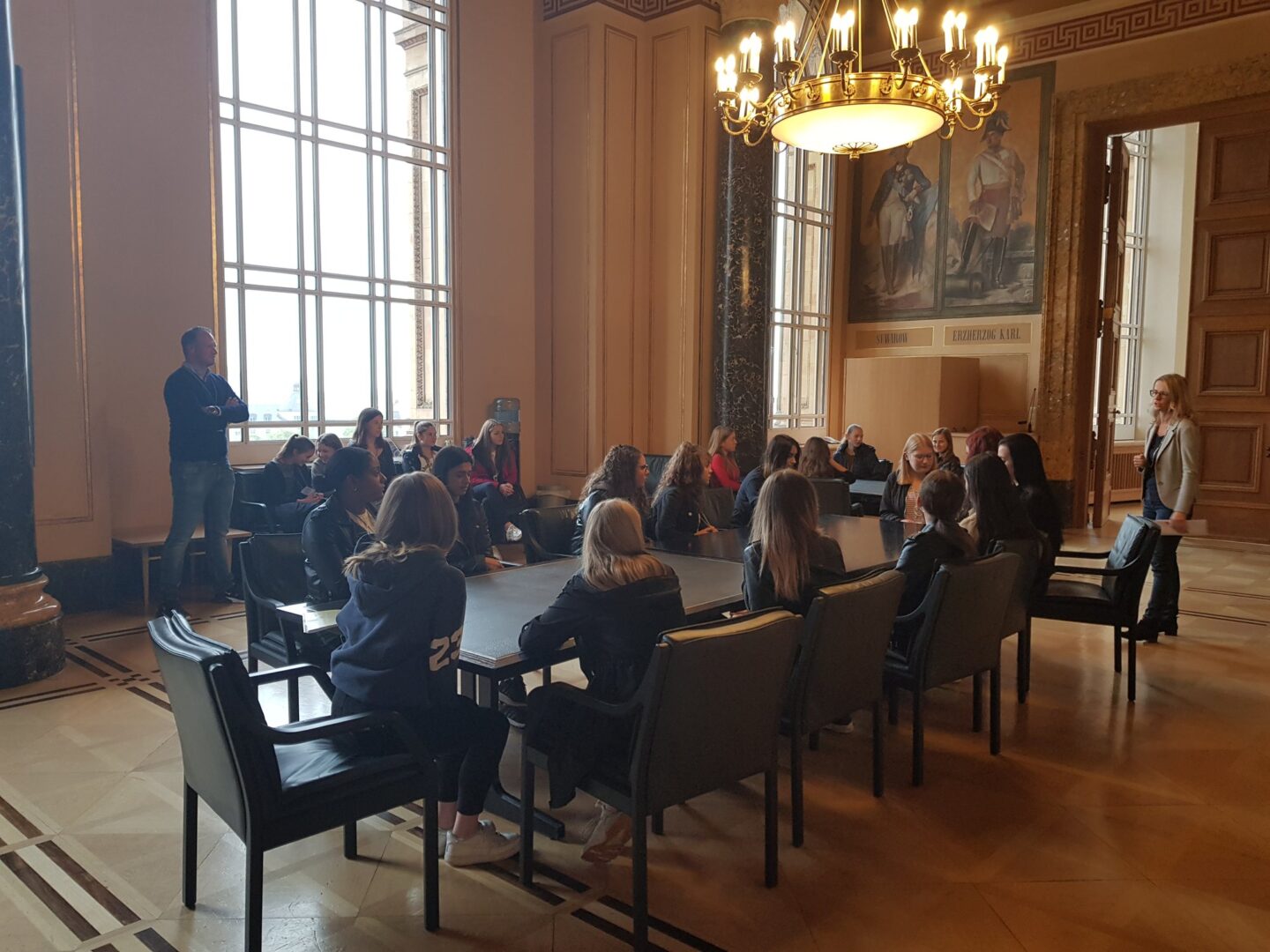 „Wir wollen mehr Demokratie wagen“, kündigte Willy Brandt im Oktober 1969 in seiner ersten Regierungserklärung als Bundeskanzler an. Fünfzig Jahre danach durfte die Klasse 10b – begleitet von Silvie Gruber und Matthias Guth – mit dem Bayerischen Landtag in München einen Kristallisationspunkt bayerischer Demokratie besuchen. Neben einer Führung durch die Räumlichkeiten des Landtags und der Rezeption eines Besucherfilms kam es auch zu einer Diskussionsrunde mit zwei Abgeordneten des heimischen Stimmkreises: Mit Rosi Steinberger von den Grünen und Josef Seidl von der AfD standen den Schülerinnen Diskussionspartner zur Verfügung, deren Ansichten das Meinungsspektrum im bayerischen Landtag in aller Breite widerspiegeln. Besonders deutlich wurde dies bei der Frage einer Schülerin nach der künftigen Energiegewinnung, bei der Windrad bzw. Kernreaktor argumentativ ungebremst aufeinanderprallten. Am Ende zeigten sich die Schülerinnen sehr angetan von der Diskussion, freuten sich aber auch, den jeweiligen Menschen hinter dem Mandatsträger näher kennen gelernt zu haben. Die MdLs ihrerseits fanden Gefallen an so manchen sehr direkten Fragen der Schülerinnen, etwa danach, welches Auto sie privat eigentlich führen.