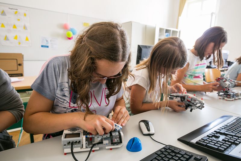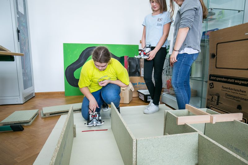 In Robotik setzen sich die Mädchen spielerisch mit Sensoren, Motoren und einer Programmiersprache auseinander. Sie lernen dabei, dass es auf Genauigkeit und Präzision ankommt. Das Schöne an diesem Wahlfach liegt darin, dass man den Erfolg sofort sieht: Denn hat man ein Programm fertig, kann man es sofort testen.